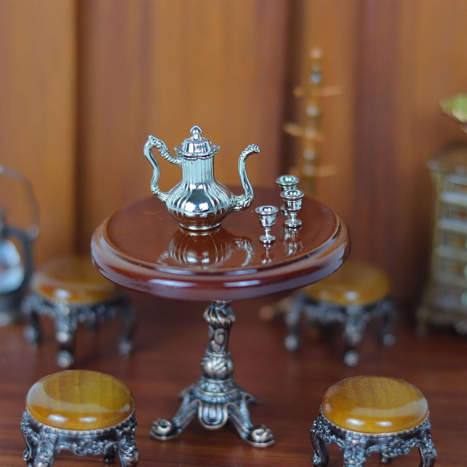 Un modello decorativo, non un vero mobile per sedie e tavoli Realizzata con materiali vintage, questa sedia è visivamente accattivante Il nostro set di sedie e tavolo per case delle bambole è adatto per case delle bambole 1:12 È un amante del modello molto pratico che ama il fai da te e i decoratori delle case delle bambole L'eccellente modello di aspetto è molto vicino alla realtà. Ottimi oggetti di scena fotografici