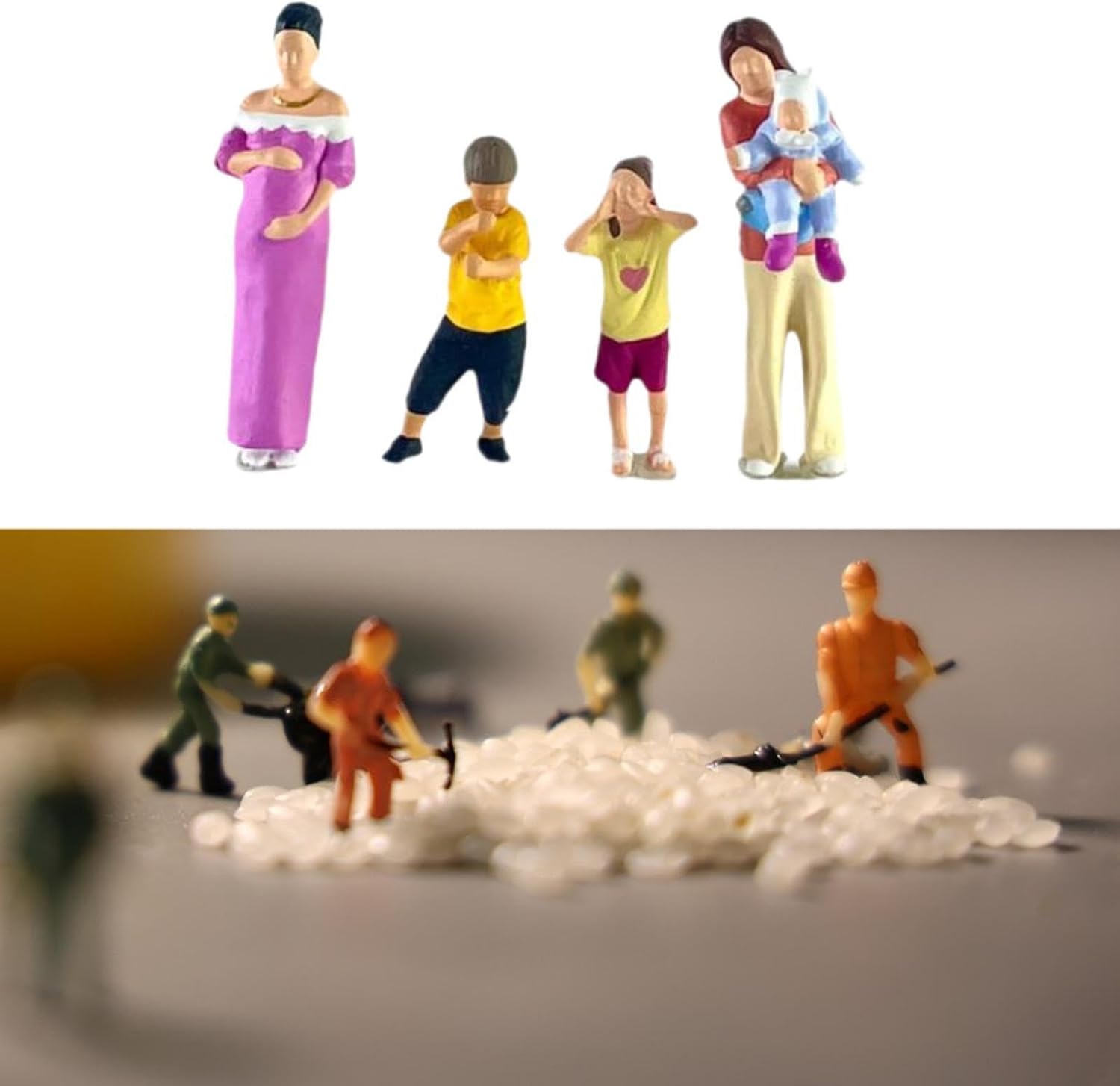 [caratteristica]: i modelli diorama sono personaggi e forme circostanti che si abbinano al modello e al design della scena, più attraenti Materiale: tutte le figure dipinte in miniatura sono realizzate in resina di qualità, ecologico, robusto [alto dettaglio]: le statuette in miniatura in scala 1/64 sono finemente dettagliate, aggiungendo un tocco realistico alla tua scena micro paesaggistica [fai da te per divertimento]: queste scene di modellini in scala sono dipinte, possono combinarle in diverse scene come preferisci Multiuso: statuette adatte per giocattoli da costruzione di tavoli di sabbia, layout di treni, modelli di architettura, giardini delle fate, micro paesaggi, modelli di scena fai da te, ecc