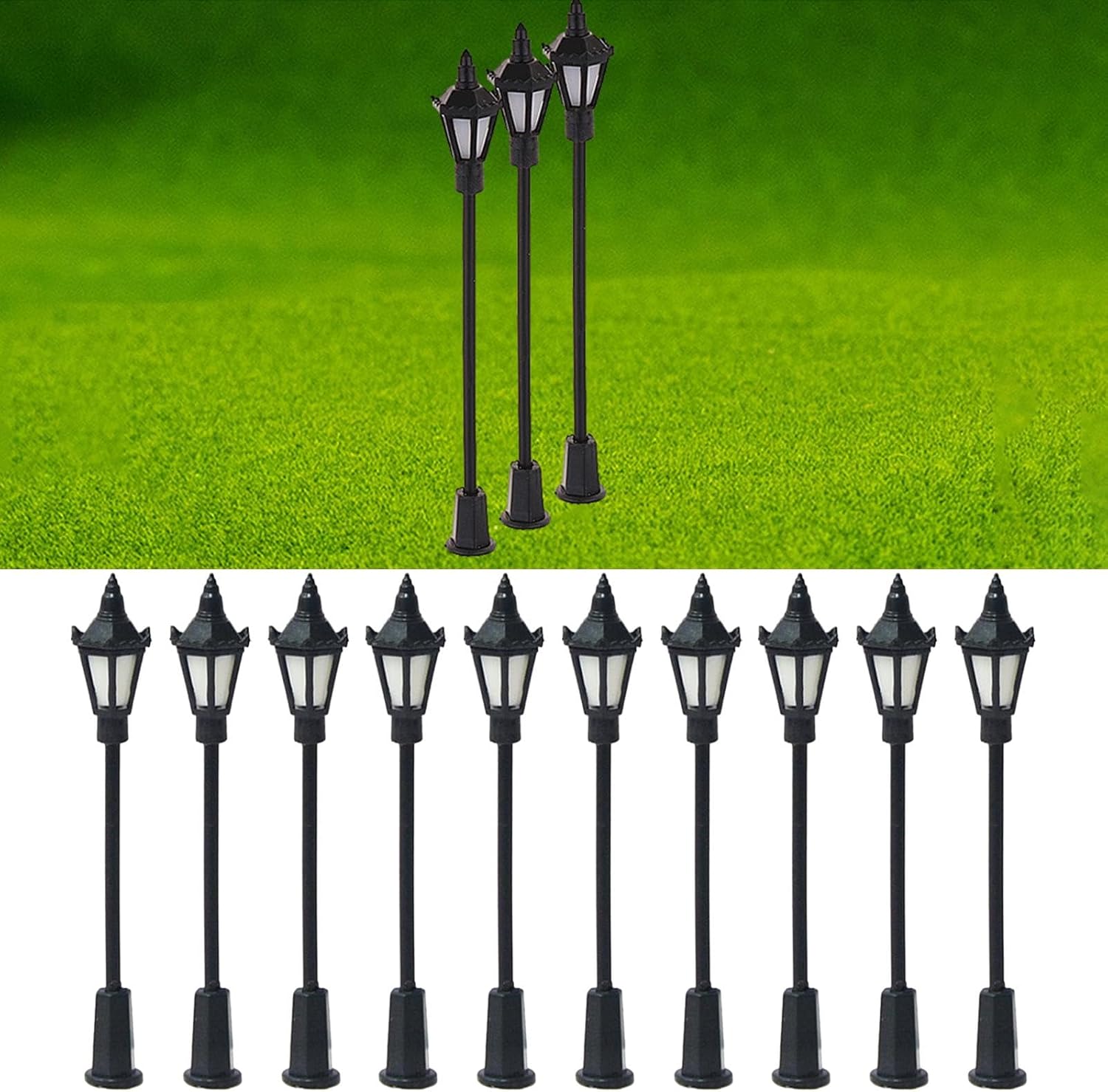 Dimensioni: altezza 6,8 cm, accessori in miniatura in scala 1:150. Le luci del modello in scala 1:150 funzionano perfettamente con gli altri oggetti di scena. [La confezione contiene: 10 pezzi modello di lampioni stradali in miniatura, lampade a lampione modello treno, lampioni da giardino in miniatura. [Ampia applicazione]: le luci in miniatura sono utili per il layout e la costruzione di modellini di treni. Adatto per modelli di costruzione, modello di tavolo di sabbia, modellini di treni, modello giocattolo, layout di scena, paesaggio esterno, micro ornamenti mandscape, decorazioni per case delle bambole. [materiale durevole] il modello di lampione è realizzato in materiali pp di alta qualità, tensione 3 V, squisita fattura e durevole. Regalo eccellente: il miglior regalo per l'arredamento del tuo modello, adatto per giardino, modelli architettonici e decorazioni paesaggistiche in miniatura fai da te.