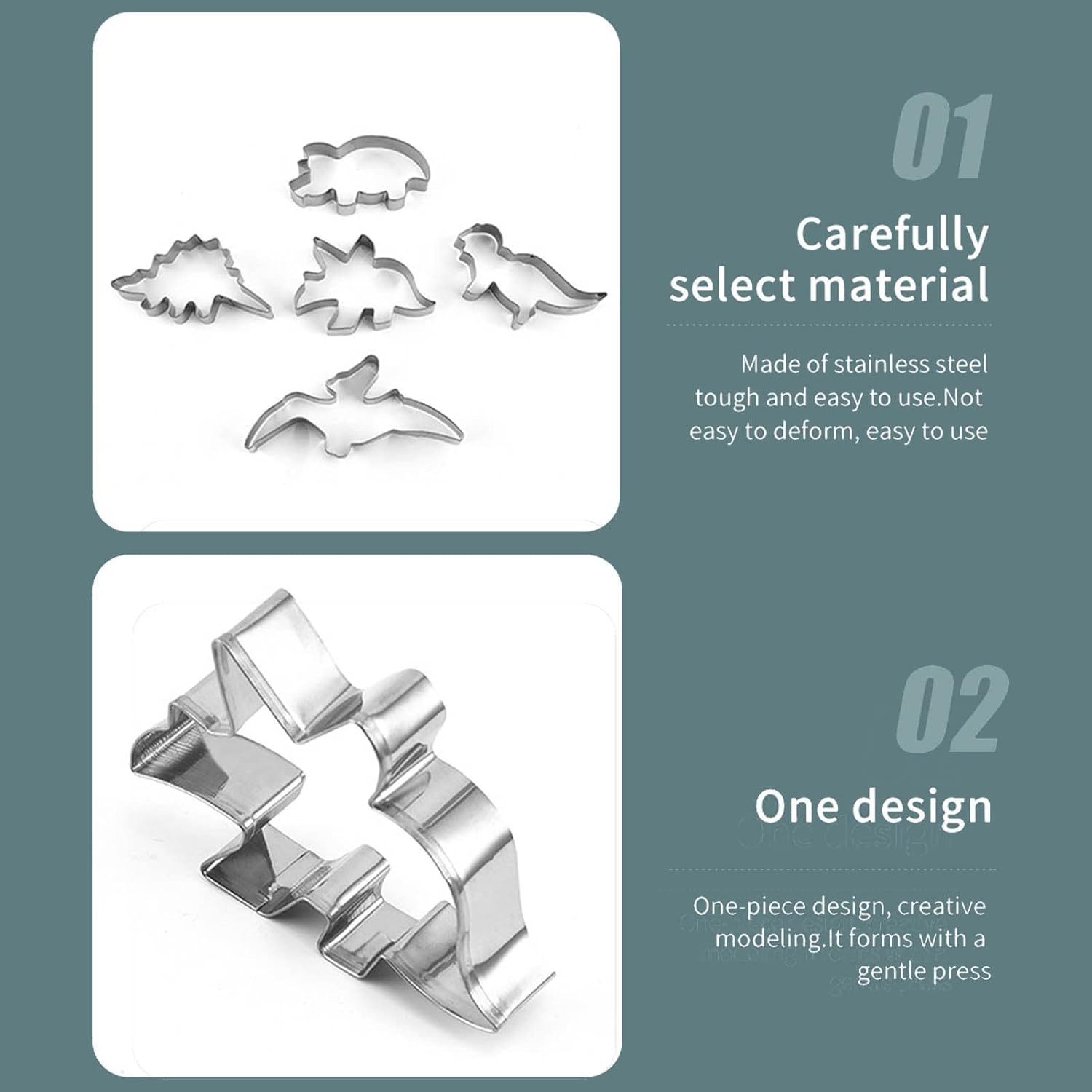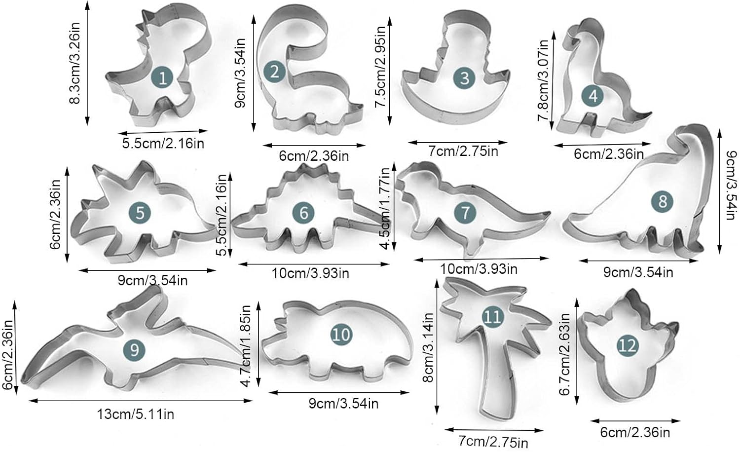 ✼ Materiale piacevole: set di stampi per biscotti a forma di dinosauro. La superficie liscia non danneggia le mani. Non arrugginisce dopo il lavaggio ed è durevole. È realizzato in acciaio inossidabile di alta qualità. ✼Festa abbinata: con 12 formine per biscotti a tema dinosauri, il set di formine per biscotti a forma di animale è perfetto per qualsiasi festa a tema dinosauri, come una doccia per bambini a tema dinosauri o una festa di compleanno di dinosauri. ✼Facile da pulire: il tagliabiscotti a forma di dinosauro è facile da pulire con acqua calda e sapone e asciugare prima di riporlo. È stato testato più volte per produrre biscotti a tema dinosauri dal design ergonomico e della giusta dimensione. ✼Facile da usare: lo stampo per biscotti a forma di dinosauro può essere utilizzato come stampo per pancake o per tagliare pasta per biscotti, fondente, pane morbido, panini, formaggio e persino argilla artigianale. ✼Varie applicazioni: che si tratti di biscotti, torte, caramelle fondenti, pancake, cupcake, panini, formaggio, pane o argilla artigianale, è possibile utilizzare lo stampo da forno con dinosauro dei cartoni animati.