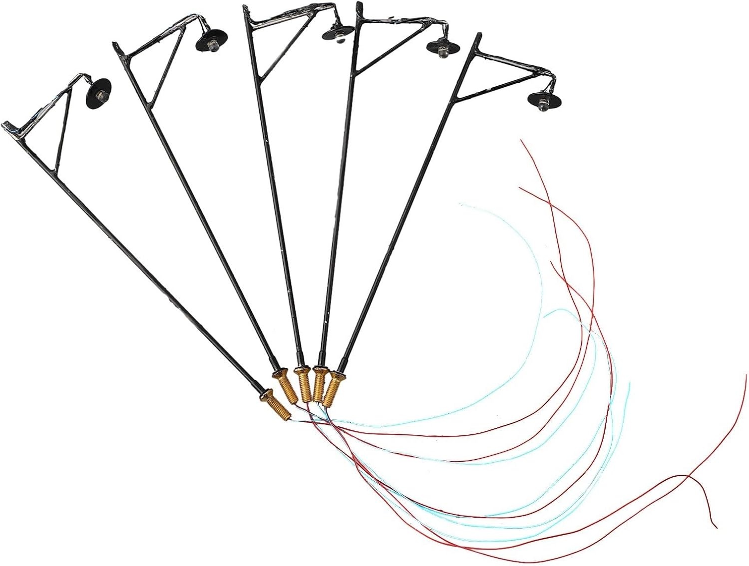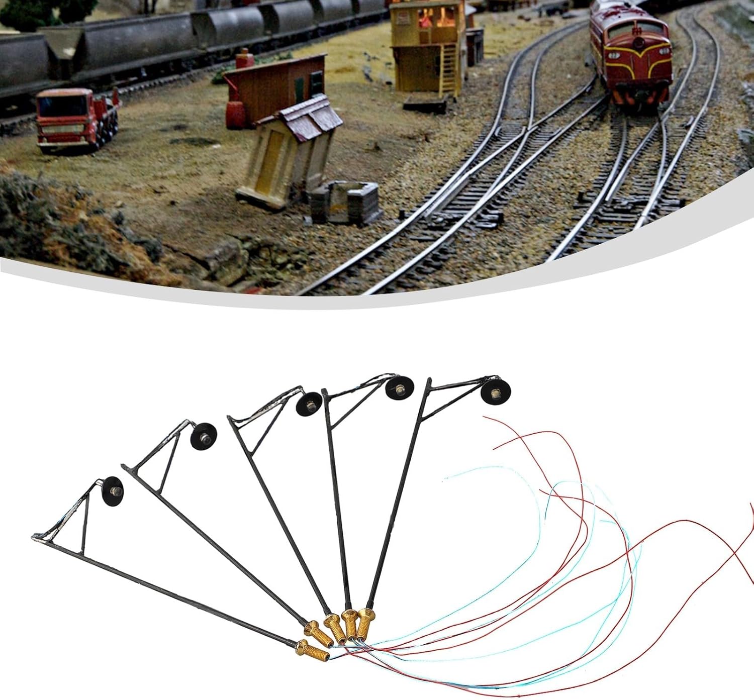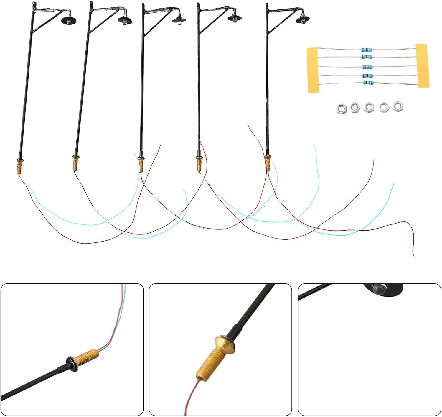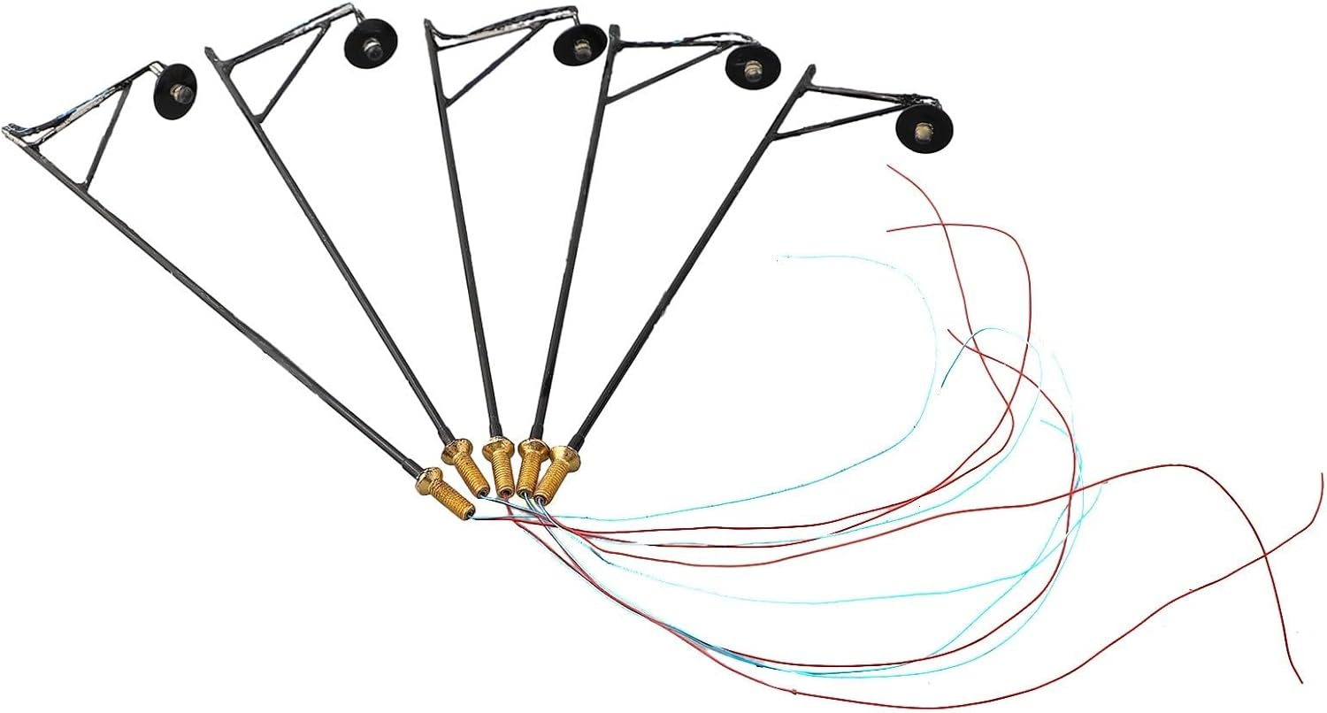 Per illuminazione stradale a LED in scala HO: set di 5 lampioni preassemblati e verniciati con LED e fili integrati per una facile installazione su layout da 12 V o 16 V utilizzando resistori da 620 ohm inclusi Per l'iluminazione stradale del LED della scala HO: Progettato per le ferrovie del modello della scala di OO e di HO che forniscono effetti realistici della strada lungo i percorsi, le piattaforme e le scene della città con il funzionamento di CC 3V per luce Per l'iluminazione stradale del LED della scala HO: Ogni unità assorbe corrente 20mA e dispone di un elemento LED di lunga durata che mantiene la luminosità costante su esposizione estesa o periodi operativi Per l'iluminazione stradale del LED della scala HO: Le dimensioni compatte si adattano perfettamente ai diorami e alle strutture dettagliate; compatibile con gli ambienti standard della scala HO e le configurazioni generali del layout Per illuminazione stradale a LED in scala HO: con resistenze e cablaggio per una configurazione immediata; migliora il realismo nei modelli di treni aggiungendo paesaggi stradali illuminati senza circuiti complessi