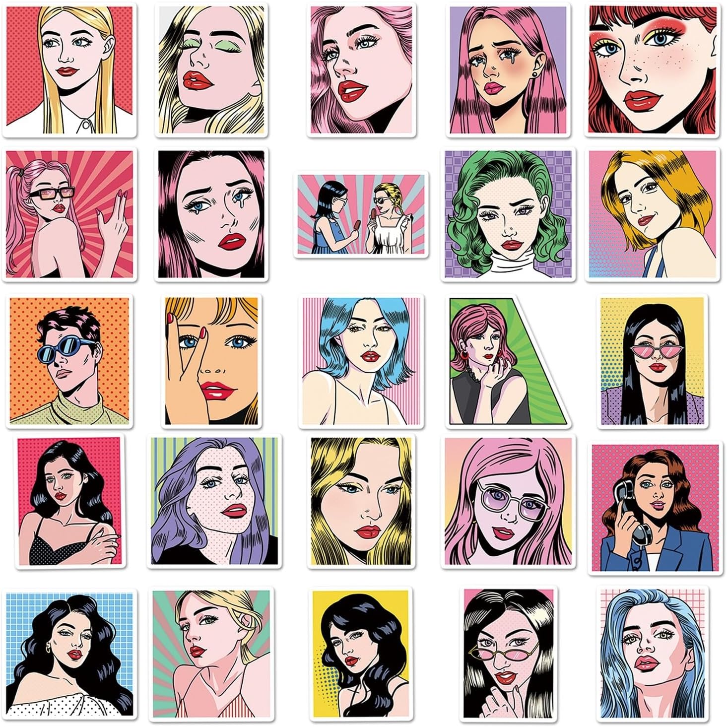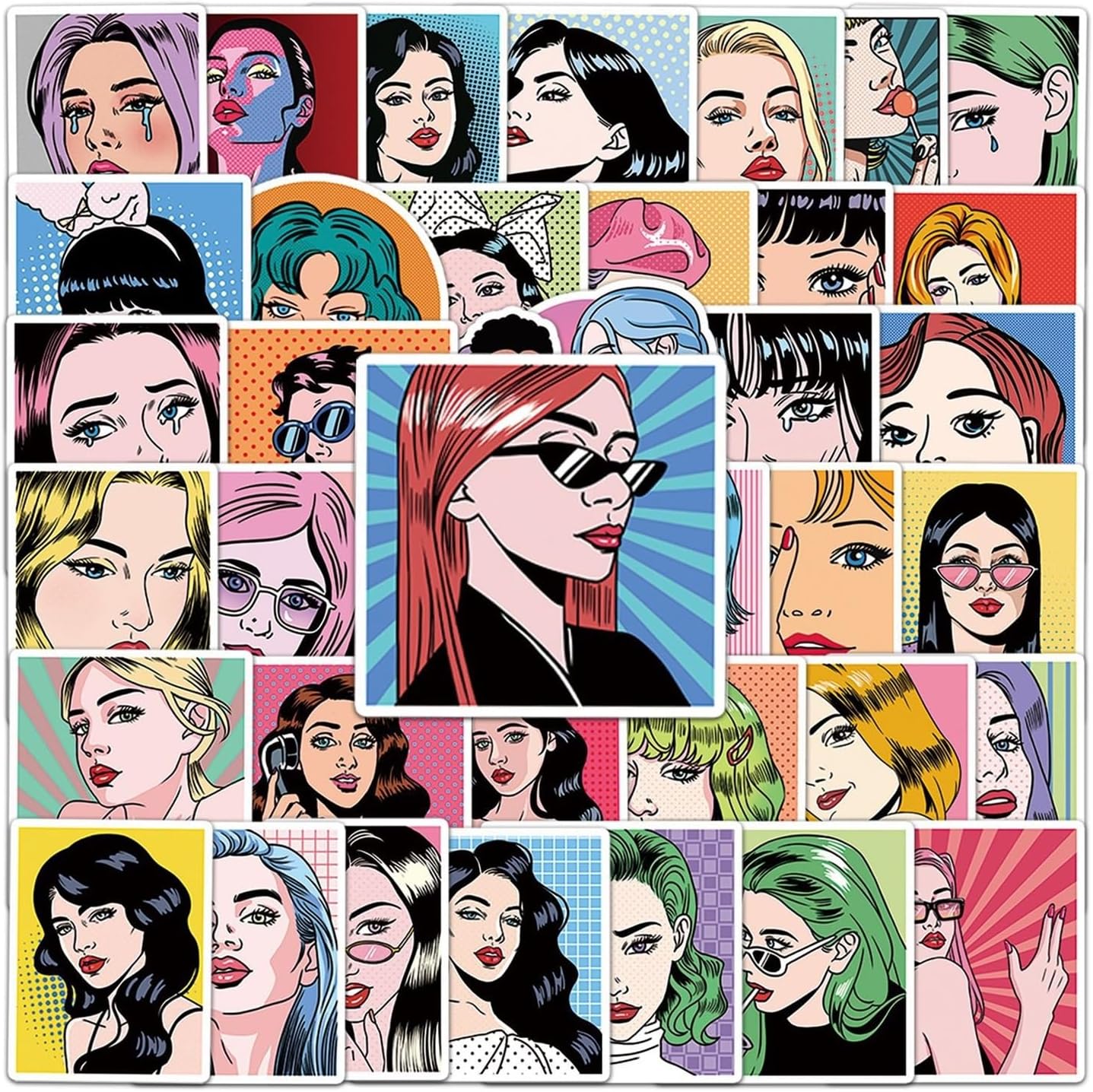 50 adesivi in vinile impermeabili Pop Art Trendy Girl estetica Comic Graffiti per laptop valigia skateboard diario ragazze adolescenti adulti