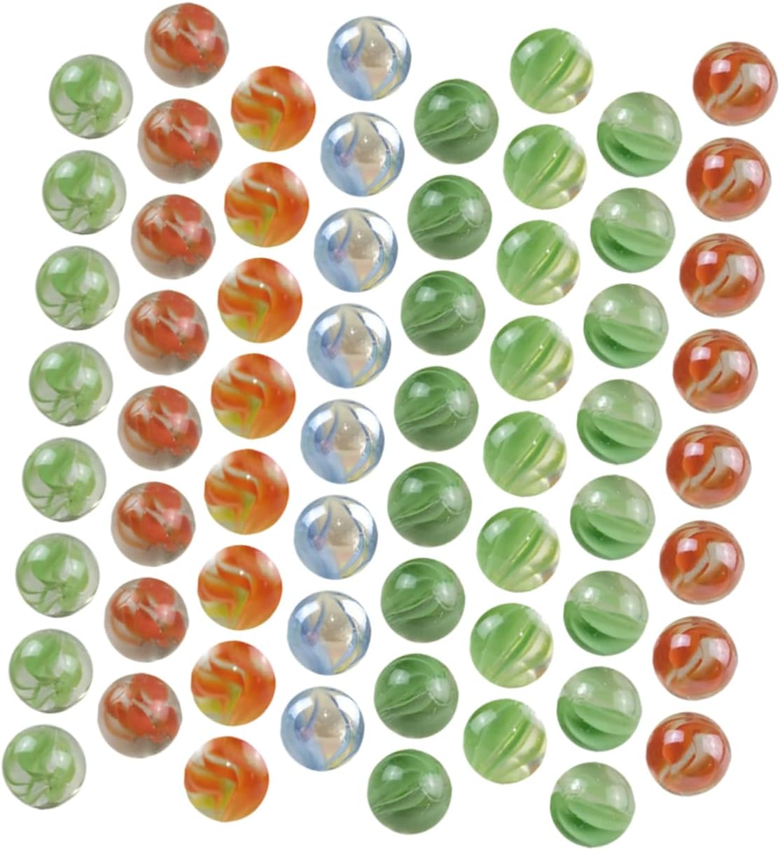 50 Biglie di vetro acidulato, mix di biglie da 16 mm e 14 mm Possibile variazione di 2 mm sul diametro delle biglie consegnate Biglie di vetro dai colori vivaci