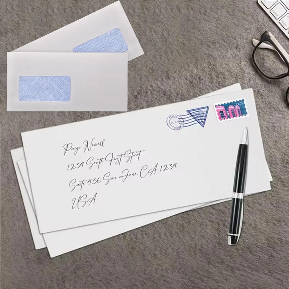 Lista di imballaggio: riceverete 1 confezione con un totale di 50 buste con finestra, sufficienti per l'uso quotidiano. Design della finestra: le buste da lettera con finestre misura 225 x 115 mm ed è stampata in blu all'interno per proteggere la vista. Alta qualità: le nostre buste da lettera con finestra sono realizzate in carta resistente di alta qualità da 80 g/m2, che è durevole. Design autoadesivo: le buste da lettera con finestra autoadesiva possono essere facilmente chiuse piegando la busta verso l'alto. Versatile: per tutti i tipi di comunicazione, che si tratti di e-mail di lavoro o inviti, questa busta è la scelta perfetta per voi.