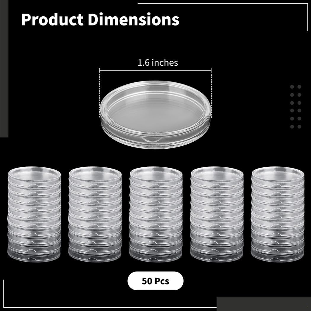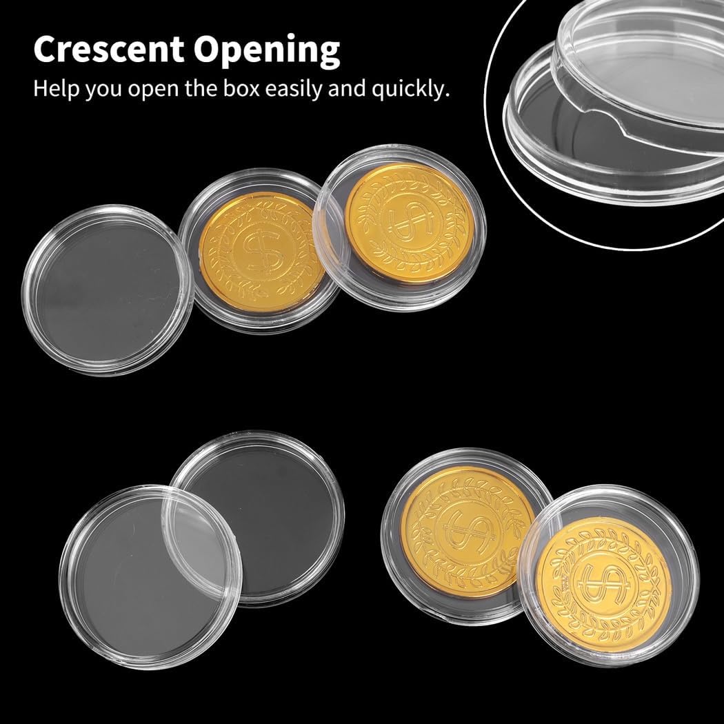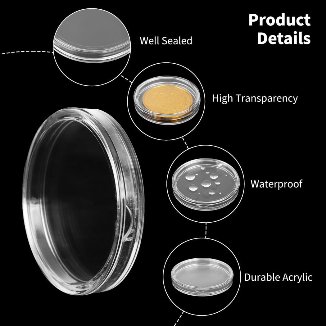 Visibilità chiara per una facile identificazione delle monete: il design completamente trasparente consente di vedere l'interno a colpo d'occhio; semplifica il processo di identificazione; elimina la necessità di rovistare tra più opzioni di archiviazione Dimensioni perfette per vari tipi di monete: ogni scatola ha un diametro di 4,1 cm; adatta per più varietà di monete tra cui koala australiano; garantisce una conservazione sicura e organizzata Meccanismo di apertura facile da usare: presenta una scanalatura a forma di luna per un accesso rapido; gli angoli arrotondati migliorano il comfort durante la manipolazione; progettato per rendere il recupero senza sforzo e piacevole Durevole e costruzione: realizzato in robusto materiale acrilico; progettato per resistere alla rottura e mantenere la forma; include cinquanta scatole per soddisfare tutte le esigenze di raccolta di monete Gestione efficiente delle monete e sicurezza: questo set di conservazione promuove un'organizzazione efficace; i coperchi comodi evitano danni da polvere e ossidazione; scelta premurosa per chiunque ami collezionare monete come regalo