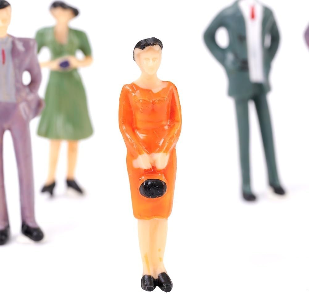 50 modellini in plastica in scala 1:32, persone sedute in piedi, in plastica, calibro 1 * Realizzato con materiali ecocompatibili * La colorazione manuale fornisce colori realistici e vivaci * Migliora l'autenticità delle piattaforme della stazione e delle scene di strada * Ideale per scene di modellini, layout e modelli paesaggistici * Uso versatile per la creazione di modelli di tavoli di sabbia, decorazione di scene, paesaggistica e altro