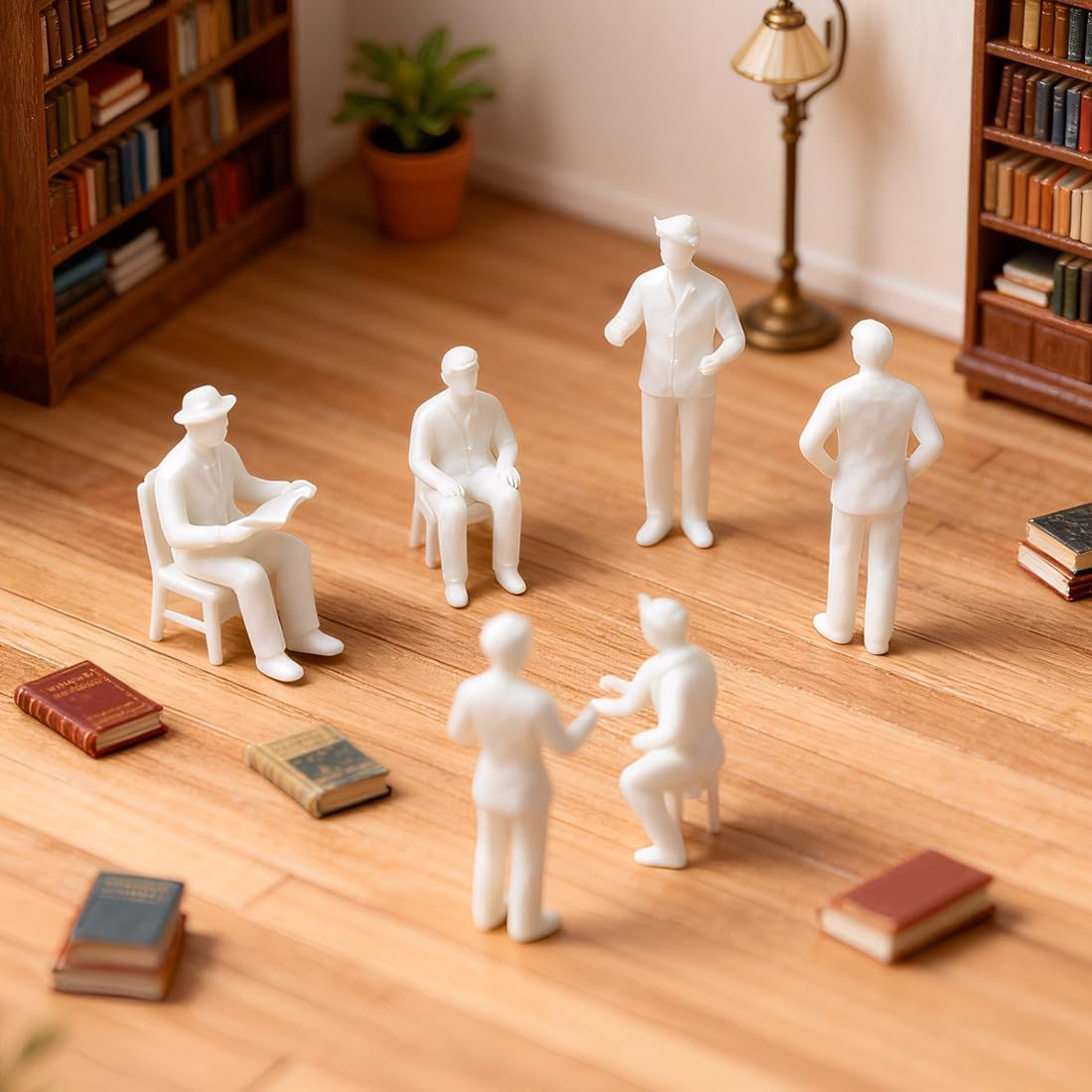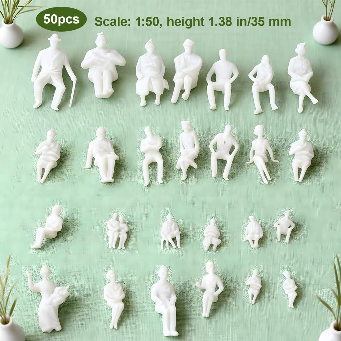 Ampia selezione di miniature: Include 50 figure in miniatura in circa 13 stili diversi. Questa varietà consente di creare scene dinamiche e creative, perfette per progetti di modellismo o diorami, adattandosi a ogni esigenza artistica Scala precisa per modelli architettonici: Figure in scala 1:50 con un'altezza di circa 35 mm. Ideali per progetti in miniatura e modelli architettonici, stimolano la creatività grazie ai diversi stili e posture, soddisfacendo preferenze artistiche variegate Materiale resistente in plastica ABS: Realizzate in plastica ABS di alta qualità, le miniature sono durevoli, resistenti agli urti e mantengono i colori nel tempo. I dettagli precisi e le proporzioni realistiche arricchiscono l'aspetto delle vostre scene Figure non dipinte per personalizzazione: Queste miniature sono pronte per essere dipinte e personalizzate secondo i vostri gusti. Perfette per progetti fai-da-te, permettono di creare paesaggi unici e vivaci che danno vita al vostro mondo in miniatura Versatilità d'uso: Ideali per modellismo, diorami e progetti architettonici. Perfette per layout di ferrovie in miniatura, scene di stazioni, design architettonici, fotografia o ambientazioni in case e parchi, offrono infinite possibilità di utilizzo