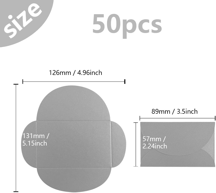 Contenuto della confezione: 50 mini buste, dimensioni dispiegate: 13,1 * 12,6 cm, dimensioni piegate: 8,9 * 5,7 cm.Che sia per uso personale quotidiano, o come regalo aziendale, imballaggio regalo evento, queste buste possono soddisfare le vostre esigenze, economico, non c'è bisogno di acquistare spesso Materiale unico: Piccole buste è fatto di carta perlescente di alta qualità con texture unica, la superficie della carta ha un delicato effetto perlescente, che presenta una lucentezza morbida e affascinante sotto la luce, che non è solo bello, ma ha anche un certo grado di prestazioni impermeabili e a prova di umidità, che può proteggere meglio gli elementi all'interno della busta Dimensione compatta: la dimensione della busta è piccola e squisita, facile da trasportare e da riporre, può essere facilmente inserita in una borsa, in una tasca o in una piccola borsa per documenti. Può facilmente ospitare tutti i tipi di piccoli oggetti, può posizionare perfettamente carte bancarie, tessere associative, biglietti da visita, ecc, per evitare di danneggiare le carte a causa di piegatura o spremitura, è il vostro stoccaggio quotidiano della mano destra Elegante combinazione di colori argento e bianco: l'argento e il bianco simboleggiano purezza, modernità ed eleganza. Queste mini buste bianche e argento aggiungono un tocco di glamour lucido ed elegante al vostro archivio, sia per uso personale che come regalo, e possono mostrare il vostro gusto straordinario Ampia gamma di utilizzi: oltre a conservare carte bancarie, tessere associative, biglietti da visita, può essere utilizzato anche per contenere una piccola quantità di contanti, note adesive, piccole foto, ecc, per soddisfare le vostre esigenze di archiviazione in diversi scenari. Sia che si tratti di occasioni di lavoro, attività sociali o vita quotidiana, può essere utile