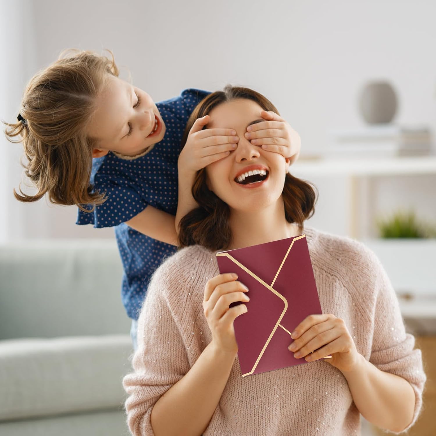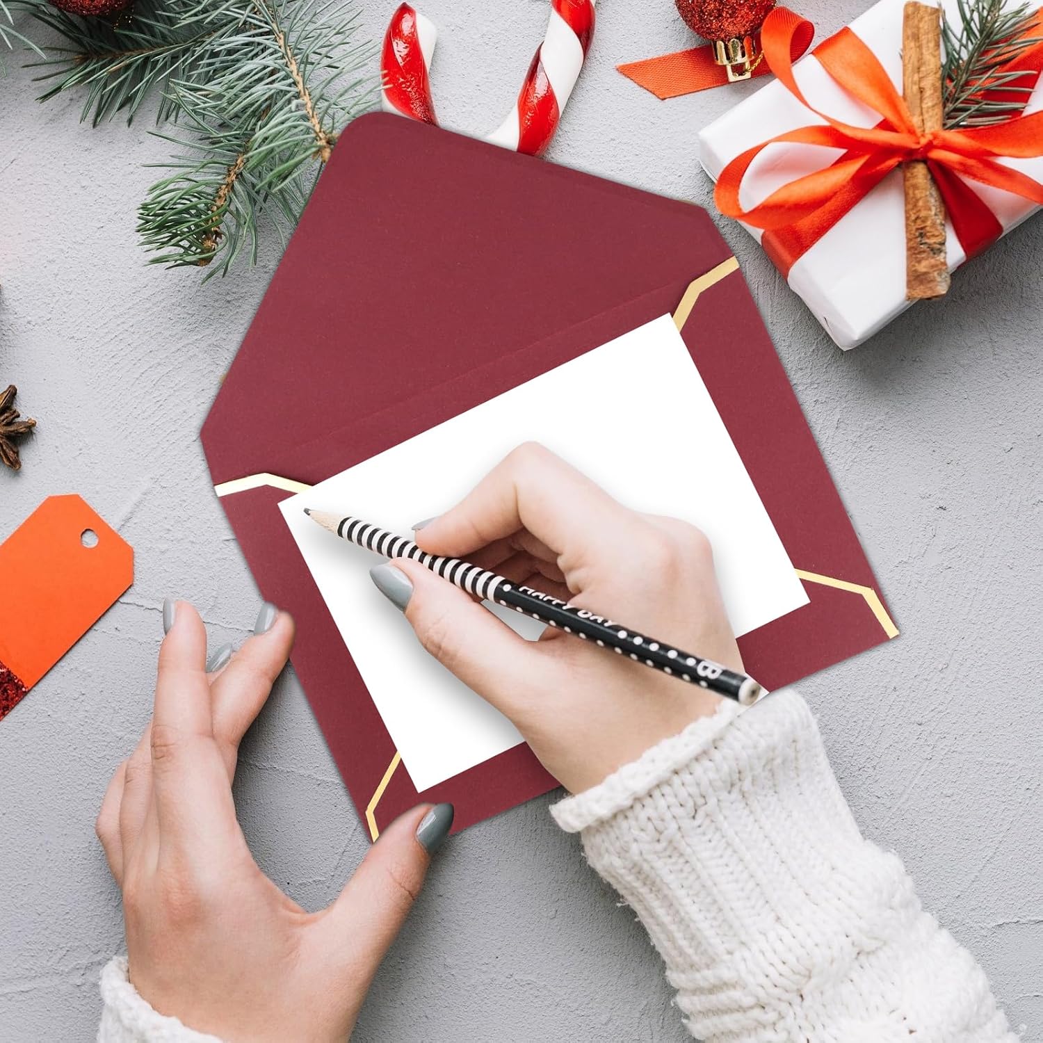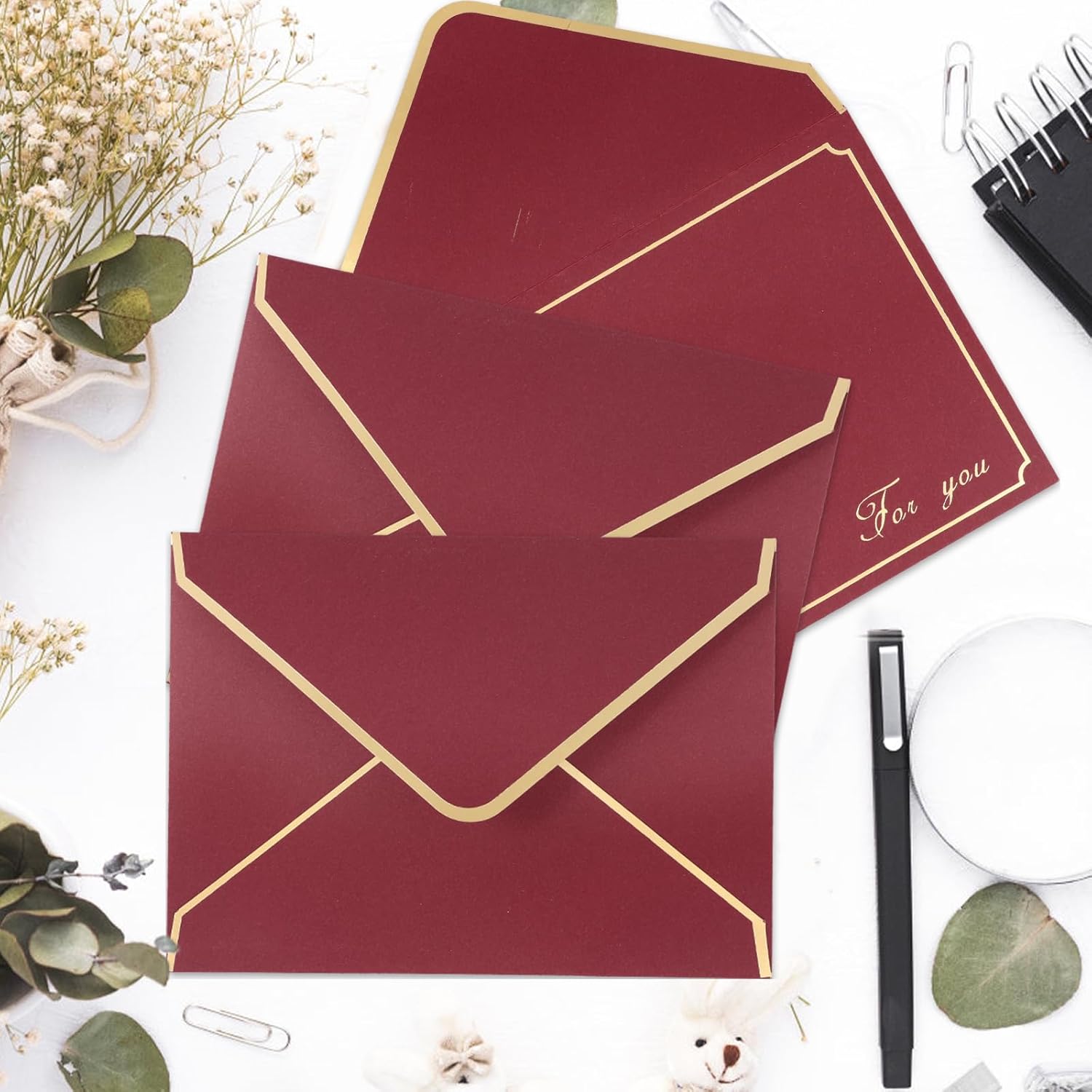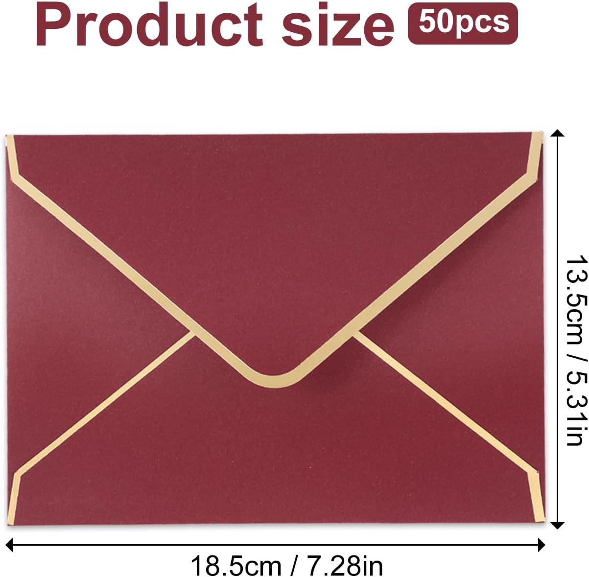 【Lussuose Buste a Forma di V】Elevate la vostra corrispondenza con la nostra confezione di buste A7 con 50 pezzi di squisite buste a forma di V ornate da splendidi bordi in lamina d'oro. Ogni busta misura 18,5 x 13,5 cm e offre un tocco di eleganza a inviti e lettere. 【Design Elegante e Resistente】Realizzate in carta di alta qualità con un design a V e un bordo in lamina d'oro, le nostre buste vantano un design chic che emana raffinatezza. La struttura robusta garantisce la durata nel tempo, mentre la texture fine impedisce lo sbiadimento, mantenendo l'aspetto incontaminato. 【Per Tutte le Occasioni】Dai matrimoni agli eventi aziendali e alle festività, le nostre buste sono perfette per esprimere gratitudine e celebrare momenti speciali. Che si tratti di un compleanno, di una laurea, di un anniversario o di Natale, queste buste aggiungono un tocco di classe a qualsiasi occasione. 【Facili da Usare per il Fai-Da-Te】Le nostre buste sono compatibili con vari tipi di inchiostro e offrono superfici di scrittura lisce senza il rischio di inceppamenti, strappi o sbavature. Per personalizzare le buste con adesivi, stampe o altre decorazioni, è possibile creare un'atmosfera unica. 【Eleganza Retrò per Esposizioni Accattivanti】Con il loro design retrò a forma di V, le nostre buste sono ideali per creare esposizioni accattivanti e dare un tono al vostro evento. Disponibili in un'ampia gamma di colori, potete scegliere la tonalità perfetta per completare il tema del vostro evento e lasciare un'impressione duratura.