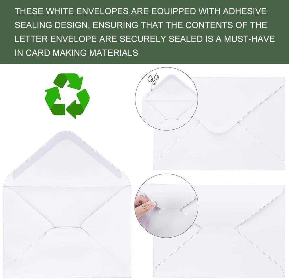 Buste con adesivo umido: tutte le buste hanno un adesivo umido sulla patta. È sufficiente inumidire la superficie adesiva con acqua fredda e premere immediatamente. Se l'adesivo umido non aderisce, è possibile scegliere anche una chiusura integrata. Scrivibili ed etichettabili: la superficie delle buste DIN B6 è bianca, consentendo di dare sfogo alla creatività scrivendo o disegnando su di esse per renderle belle e uniche. Le nostre buste possono anche essere stampate ed etichettate. Dimensioni: le nostre buste senza finestra hanno una buona consistenza e texture e misurano 125×175 mm. Ogni confezione contiene 50 buste bianche, fornendo una quantità sufficiente per l'uso quotidiano. Buste per documenti importanti: le buste bianche sono ideali per la comunicazione quotidiana, adatte per l'invio di documenti importanti come fatture, domande, prospetti aziendali, dichiarazioni o documenti contrattuali. Ampia gamma di applicazioni: possono essere utilizzate per biglietti di auguri, biglietti di Natale, inviti, biglietti di ringraziamento, buoni regalo e altro ancora, rendendole perfette per compleanni, matrimoni, Natale o altre occasioni festive.
