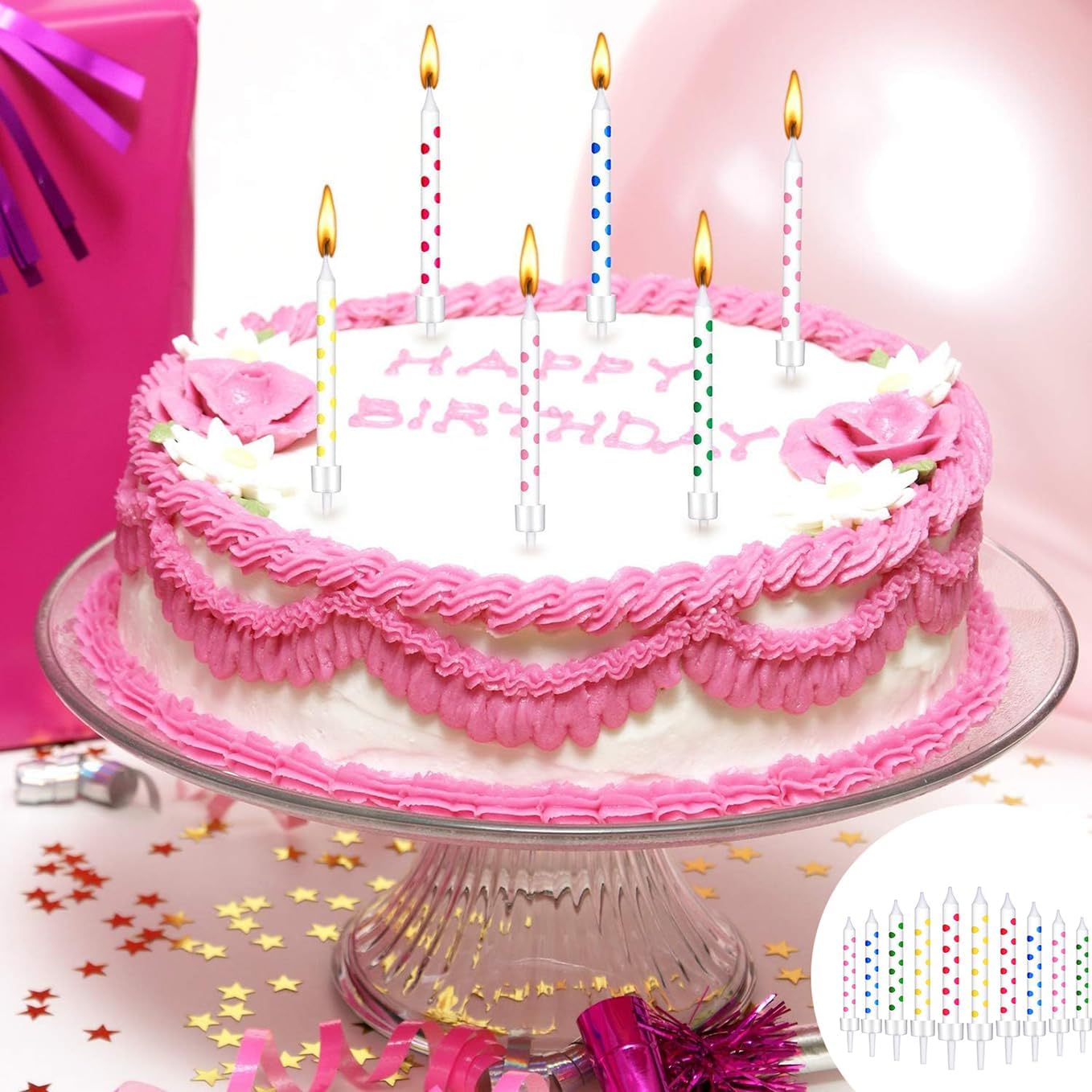 Candele di compleanno da fare da soli: le candele colorate sembrano fantastiche sulla tua torta. Dopo aver utilizzato la candela di compleanno, devi solo tagliare la parte superiore della candela. Possono essere facilmente conservati e riutilizzati per il prossimo utilizzo. Materiale di qualità: torta di compleanno candele in materiale di cera, che è affidabile e non velenoso, non presenta un odore strano. Dimensione per la decorazione della torta: Ognuna delle candele di compleanno con portafogli è alta circa 2,76 pollici / 7 cm e quindi ha una buona dimensione per decorare una torta di compleanno o cupcake. Delicate decorazione della torta: Queste candele della torta sono stampate con un modello a punti. Sono disponibili in 5 colori, tra cui rosa, giallo, blu, verde, rosso, vivo e Hell.to coprire le vostre esigenze di decorazione per una festa di compleanno, ma anche una scelta di colori sufficiente per adattarsi al tema di ogni festa. Ampio campo di applicazione: le candele di compleanno sono adatte per diverse occasioni, come festa di compleanno, matrimonio, festa del bambino, festa ecc. possono creare una piacevole e allegra.