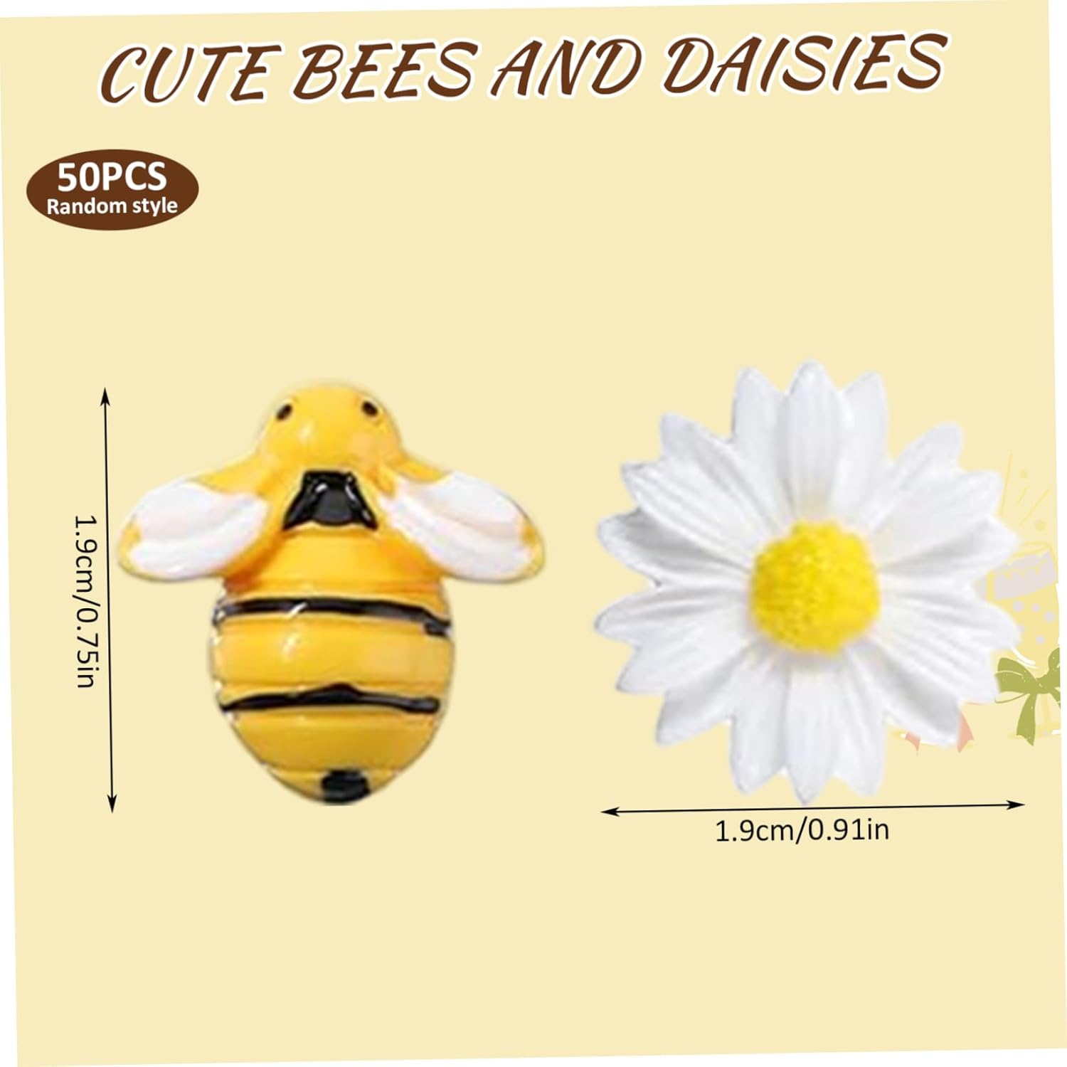 Lightweight and Facile to Place: realizzati in resina leggera, queste minuscole decorazioni sono facili da attaccare con colla commestibile o adesivo artigianale..Rimangono sul posto senza affondare o deformare..Decorazioni per la torta delle Uso decorativo versatile: questi mini abbellimenti sono ottimi per decorare torte di compleanno, docce per bambini, feste a tema dell'ape o persino ghirlande fatte a mano e opere d'arte in resina..in resina Adorabile combinazione di e fiori: questo set da 50 pezzi include affascinanti mini in resina e margherite, perfette per aggiungere un'atmosfera divertente e allegra a torte, cupcakes e mestieri fai-da-te..Decorazioni per la torta delle Ideale per artigiani e fornai: che tu sia un fornaio per la casa o un appassionato di fai -da -te, questo set offre un modo creativo e gioioso per migliorare il tuo lavoro..È anche bello per chiunque ami la decorazione pratica..di resina per l'artigianato Design dettagliato e realistico: ogni ape e fiore sono accuratamente realizzati con colori vibranti e trame realistiche, rendendoli un'aggiunta accattivante al tuo dessert o progetto creativo.