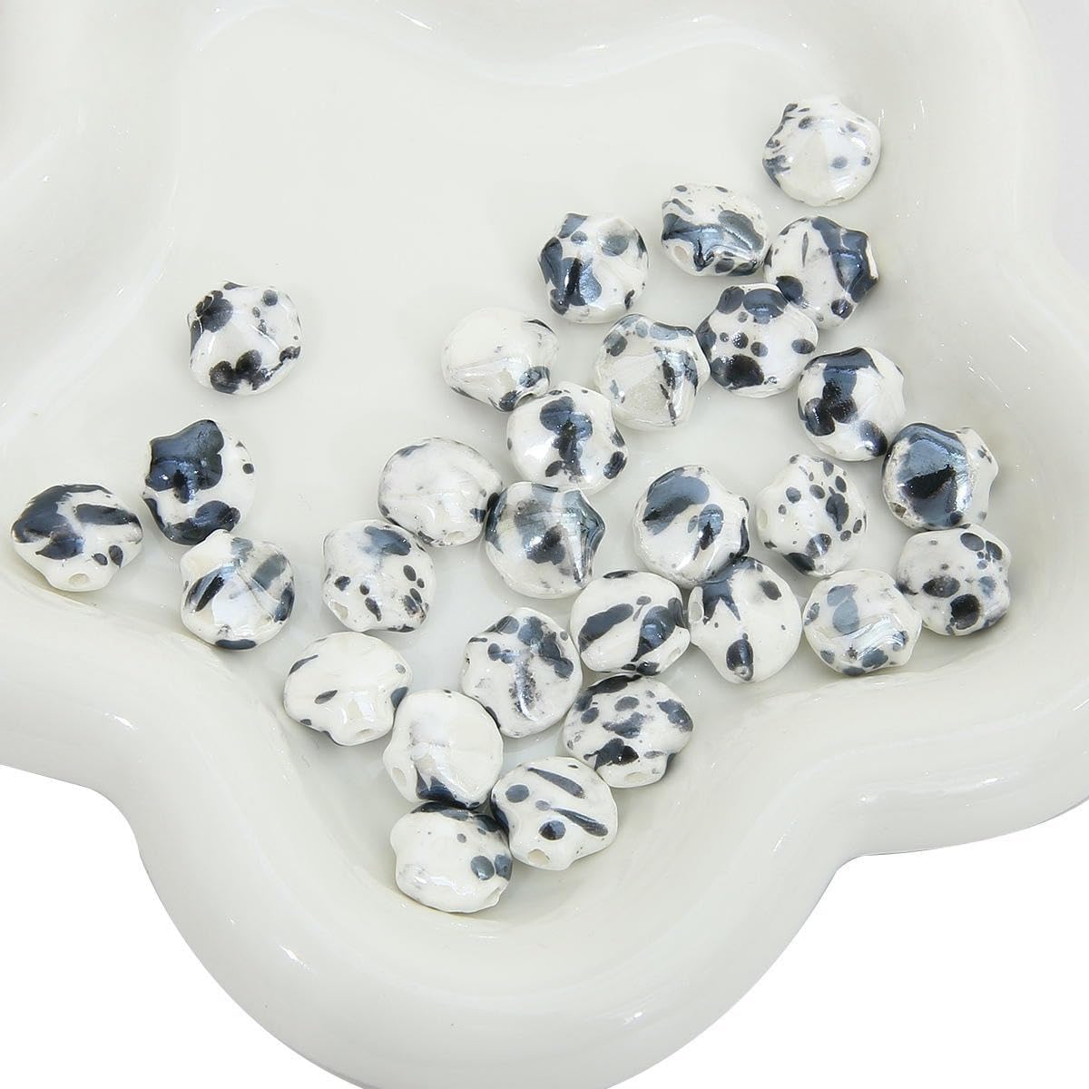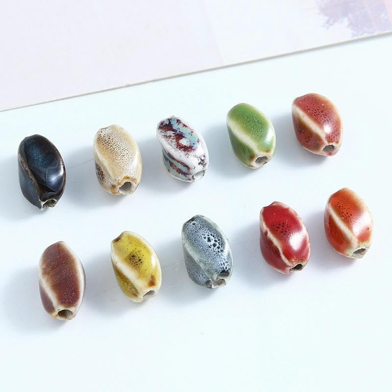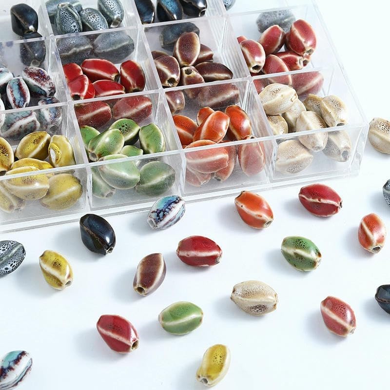 Perline ovali in ceramica smaltata, dimensione perlina: 16 mm, diametro foro: 2,5 mm, 50 pezzi/confezione Queste perle di ceramica sciolte sono dai colori vivaci e smaltate a mano, con texture superficiali chiare e uniche e un aspetto vintage Queste perle in porcellana smaltata sono realizzate in ceramica con una superficie liscia senza sbavature, una consistenza resistente, non facili da rompere e comode da indossare Queste perle ovali in porcellana sono dotate di comodi fori per l'infilatura e si abbinano magnificamente allo spago o al cordoncino intrecciato per creare bellissimi braccialetti o collane di perline Queste perle di porcellana smaltata sono versatili e perfette per realizzare braccialetti, collane, gioielli, pendenti e vari lavori artigianali fatti a mano