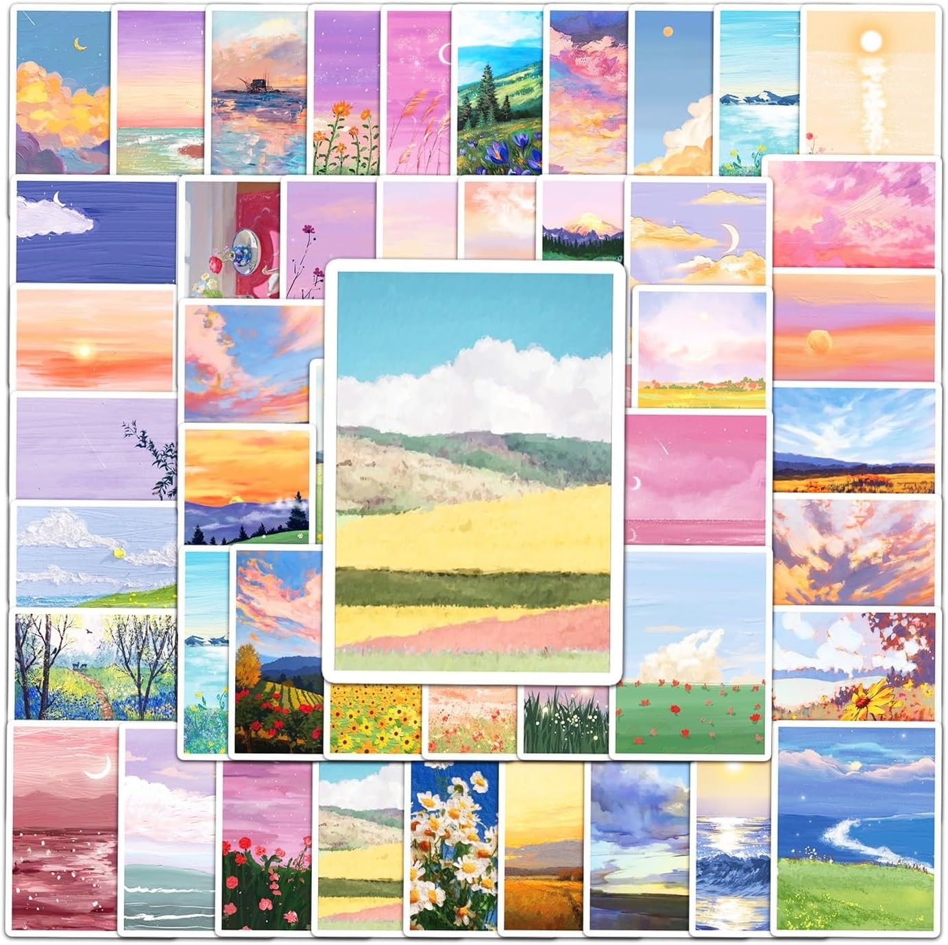50 pezzi di pittura di paesaggio estetica pastello graffiti coreani adesivi in vinile impermeabili per laptop valigia skateboard diario ragazze adolescenti adulti
