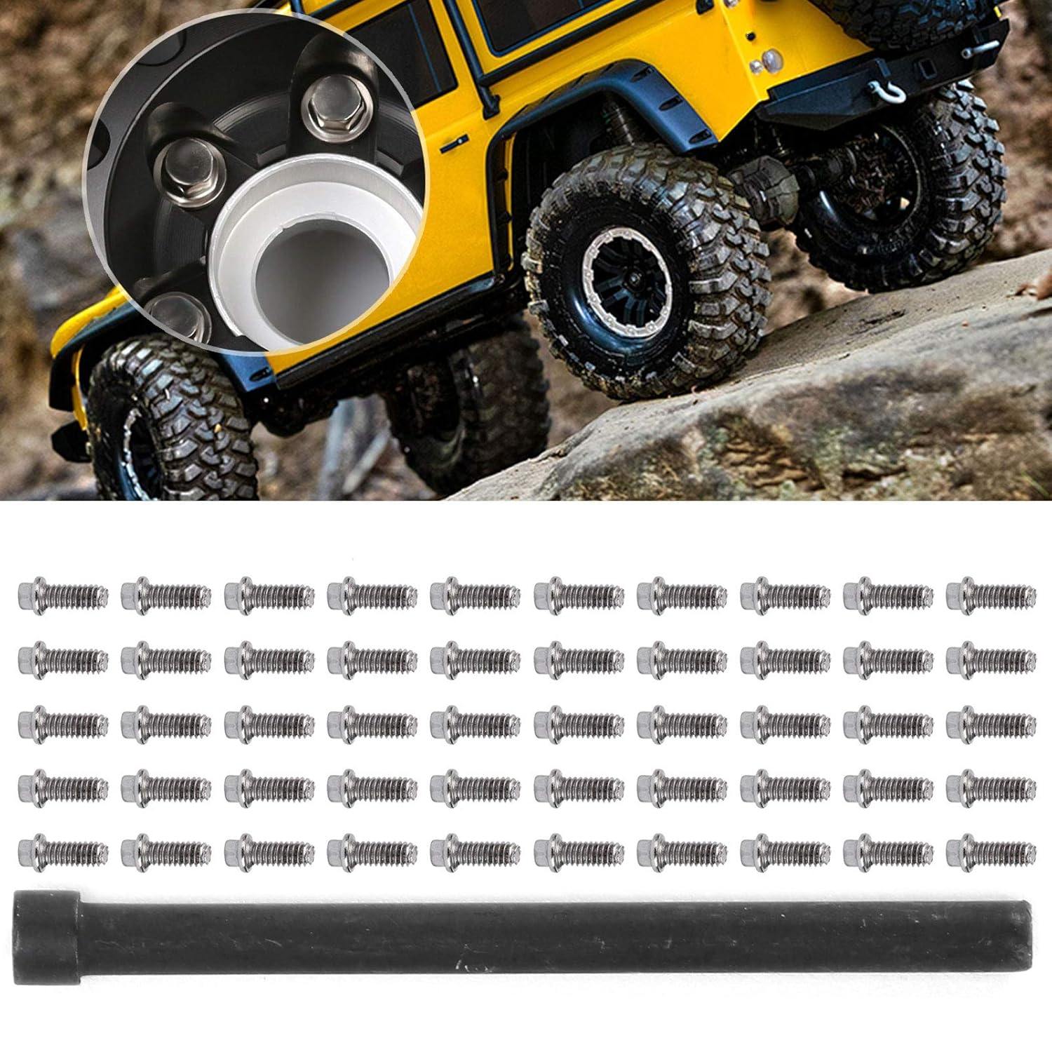 È realizzato in acciaio inossidabile di alta qualità, ha un'elevata durezza, non è facile da arrugginire e ha una lunga durata. È resistente alla torsione e alla pressione, ha un design esterno simulato ed è dotato di cacciavite. Puoi sostituire tu stesso le viti vecchie e danneggiate per rendere la tua auto RC più elegante e attraente. Questo cavo può passare facilmente attraverso una varietà di ls, è piccolo, leggero e facile da installare e utilizzare. Pregevole fattura, simulazione D, adatta per veicoli cingolati telecomandati 1/10, adatta per ruote da 1,9/2,2 pollici.