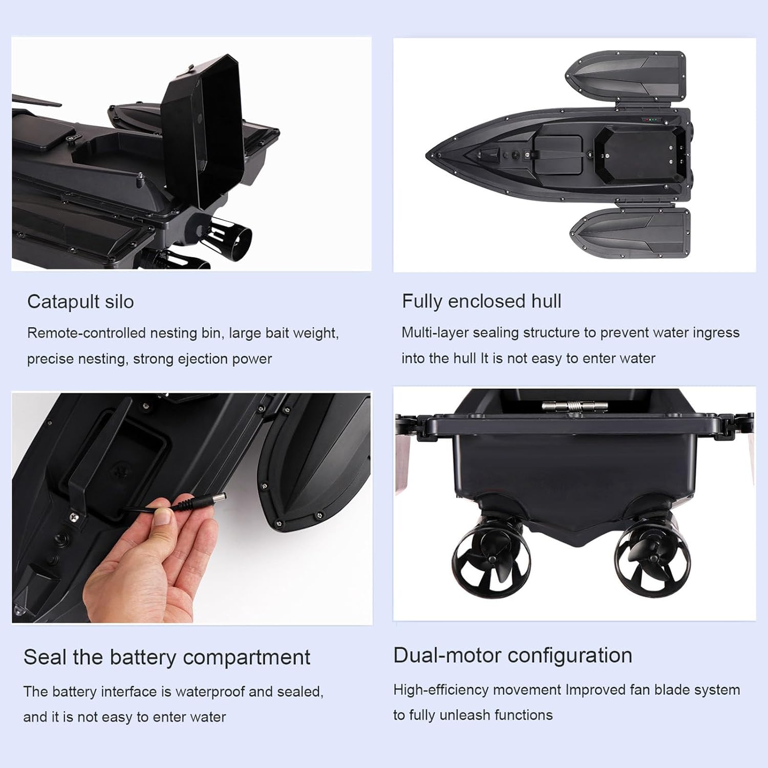 CORREZIONE DELL'ALBERO: la navicella è dotata di un sis-tema di bilanciamento automatico e quando la navicella devia a causa del v-ento, delle onde e del fuoco durante il processo di guida, la funzione a doppio motore controllerà efficacemente la direzione della navicella che viaggerà in linea retta. TELECOMANDO: 500M di distanza di controllo remoto senza interferenze, il segnale è più stabile in un ambiente chiaro. La barca esca è dotata di un sis-tema di bilanciamento automatico. Quando la nave devia a causa del v-ento eccessivo e delle onde durante la navigazione, corregge automaticamente la deviazione per mantenere la nave in linea retta. MATERIALE ABS: Il nostro gommone è realizzato in plastica ABS, con un corpo impermeabile e anti-collisione, in grado di resistere a venti e onde forti e con prestazioni di lunga durata. Può resistere a venti e onde forti ed è bella. Il fondo a forma di M può ridurre gli scuotimenti ABILITÀ DI PESCA NOTTURNA A LED: questa barca da pesca è dotata di luci a LED per ampliare il raggio visivo durante la pesca notturna. È facile giudicare la direzione di navigazione, garantire un'esca accurata e catturare con successo le carpe. SERVIZIO POST-VENDITA AFFIDABILE: Le vostre esigenze sono il nostro obiettivo. Se avete qualunque domanda circa il prodotto, ritenga prego per contattarci, forniremo il feedback di 24 ore e lo risolviamo per voi appena possibile.