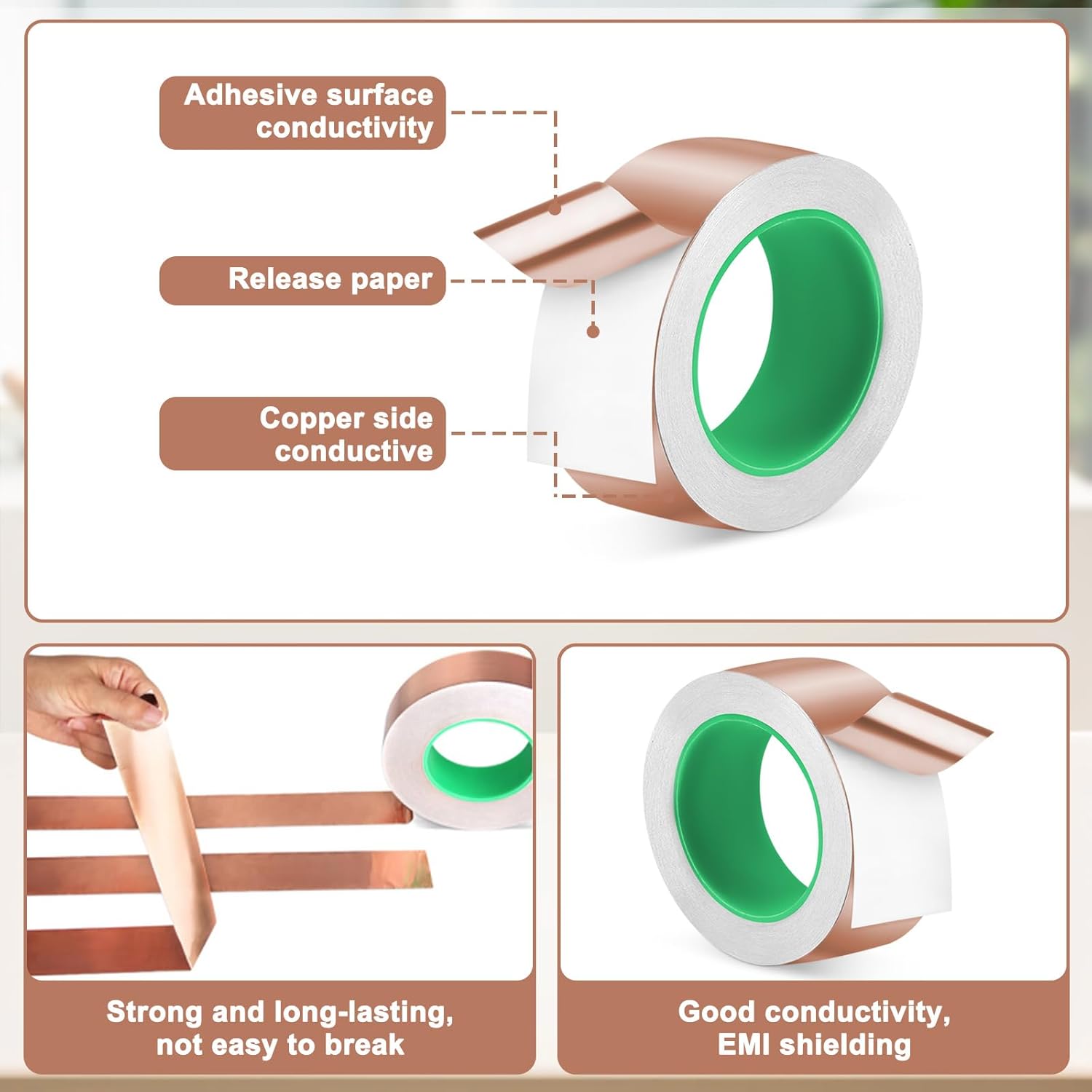 【Nastro Autoadesivo in Foglio di Rame ad Alta Resistenza】: Il nostro nastro di rame contro le lumache è realizzato in foglio di rame sottile di alta qualità con trattamento speciale. Il rame offre un'eccellente conduttività e resistenza alla corrosione. Il retro del nastro anti-lumache è dotato di un forte adesivo che garantisce un'adesione sicura a superfici lisce come letti rialzati, vasi e fioriere. 【Nastro in Rame Repellente per Lumache per Aiuole da Giardino】: Progettato per giardini e aree esterne, è sufficiente avvolgere 1-2 strati intorno a vasi, aiuole rialzate o contenitori. Il nastro anti-lumache ad alta densità crea una barriera naturale che interagisce con il muco delle lumache per fornire una leggera scossa elettrica che scoraggia efficacemente i parassiti dei molluschi e protegge le piante dai danni. 【Larghezza Ottimale - Doppia Difesa】: Dimensioni: 50 mm (larghezza) × 20 m (lunghezza) × 0,05 mm (spessore). Il design largo 50 mm del nastro schermante autoadesivo rafforza la protezione naturale attraverso le reazioni ioniche tra il rame e la melma dei molluschi. Rispetto ai nastri stretti (<3 cm), la nostra larghezza di 5 cm garantisce una maggiore copertura e affidabilità. 【Schermatura EMI/RFI】: Ideale per apparecchiature elettroniche e audio: questo nastro biadesivo conduttivo EMI blocca efficacemente le interferenze elettromagnetiche (EMI) e le interferenze a radiofrequenza (RFI). Perfetto per chitarre, strumenti e sistemi audio per ridurre il rumore, eliminare le interferenze di segnale e garantire un suono stabile e chiaro. 【Applicazione Multiuso】: Le applicazioni versatili includono: Controllo di lumache/lumache in giardino, schermatura EMI/RFI in elettronica, riparazioni e progetti creativi di bricolage. Il repellente per lumache in rame può essere facilmente tagliato a misura e applicato a vari materiali. Un must per gli appassionati di giardinaggio, manutenzione delle attrezzature, artigianato e decorazione.