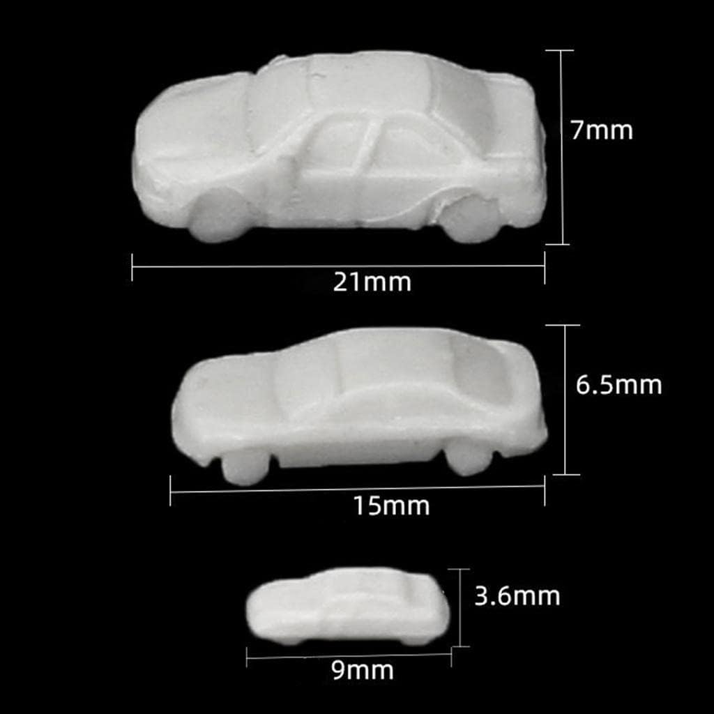 Ideale per i tuoi progetti fai da te, materiale da costruzione di modelli, decorazione di paesaggi del parco. Materiale: plastica 50 pezzi 1: 500 calibro auto modello rendono il vostro modello di treno e altri modelli di scenario più chic. Lunghezza: circa 1 cm Colore: bianco