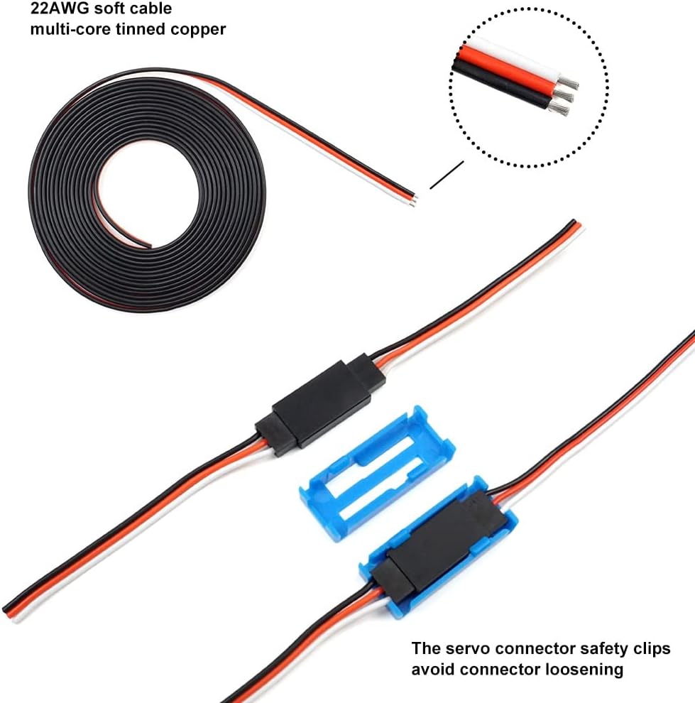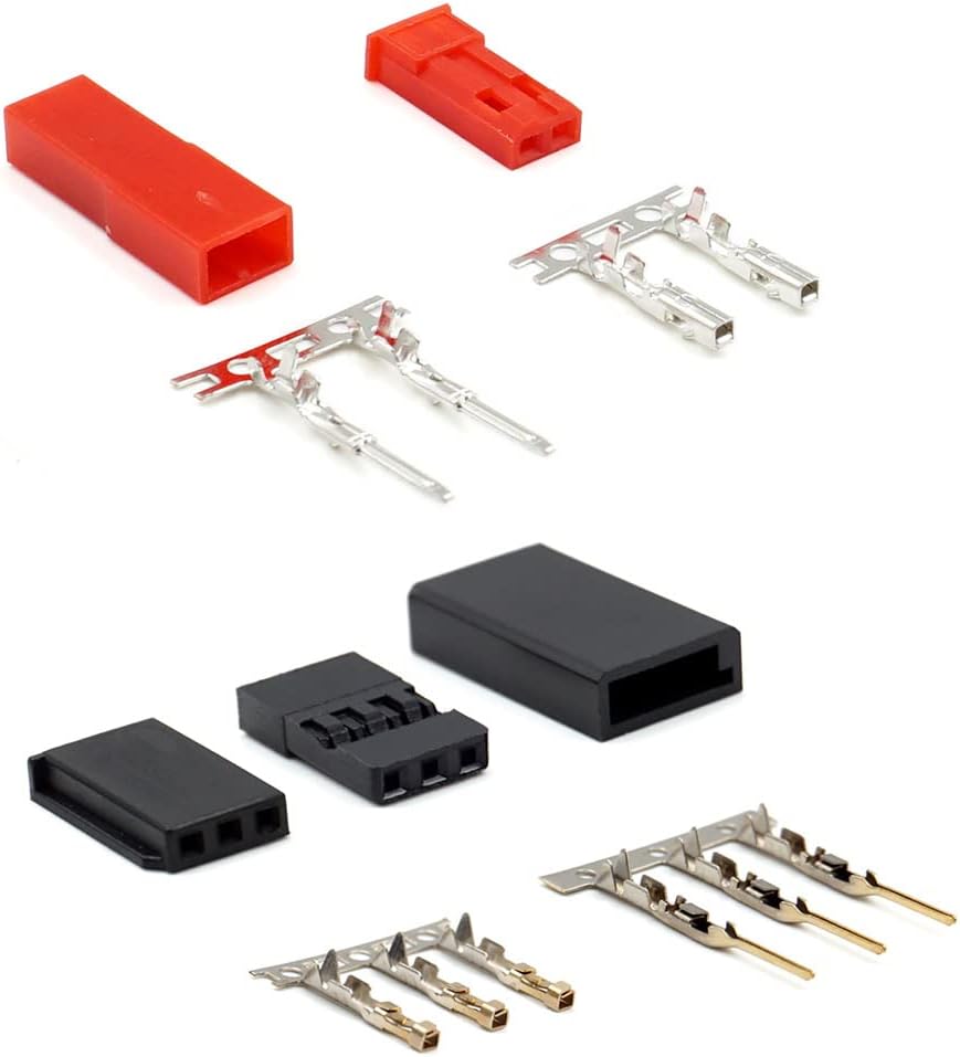 Include 30 set di connettori servo, 30 set di connettori femmina, 25 set di connettori SYP rossi, 25 set di connettori femmina SYP, 3 metri di cavi 22AWG, 10 set di terminali per connettori servo, un paio di pinzette e un set di strumenti di crimpatura in una scatola. Questo strumento per crimpare capicorda è dotato di un meccanismo a cricchetto, che può anche aiutarti a risparmiare energia e forza. Comodo da usare e facile da usare. Intervallo di crimpatura: 0,25-1,5 mm/23-16 AWG, per connettore KF2510/JST da 2,54 mm 3,96 mm. La spina nera è compatibile con le spine Futaba e JR. Ideale per estensioni servo nel settore fai da te, riparazione di collegamenti servo. Il connettore rosso è compatibile con i connettori JST SYP. Ideale per cavi di alimentazione. Il cavo è lungo 3 metri, ha fili 3P e 22 AWG. Il conduttore è realizzato in rame stagnato multipolare, resistente e in grado di sopportare una corrente sufficiente. Ogni set include un alloggiamento del connettore, un alloggiamento protettivo del connettore e un connettore con pin a crimpare. Il connettore del servo ha un passo dei pin di 2,54 mm e il connettore rosso ha un passo dei pin di 2,5 mm