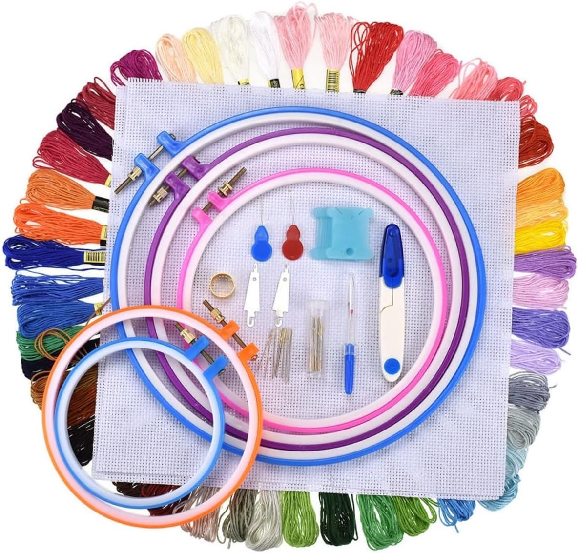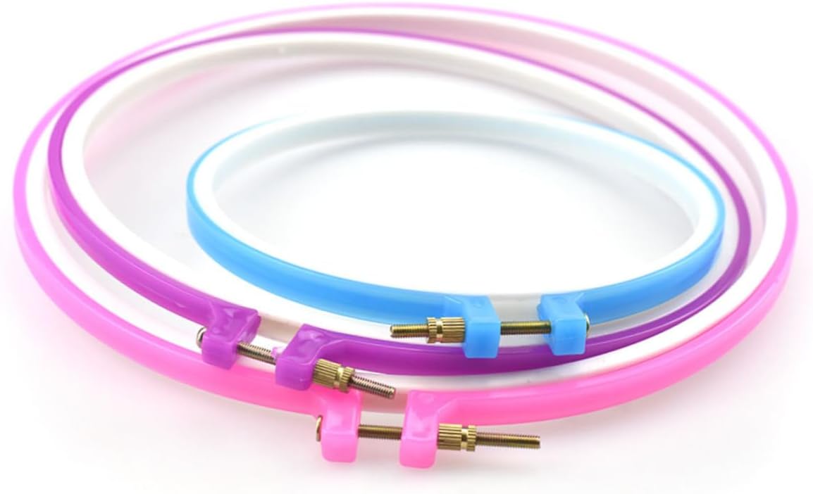 Cornici circolari per ricamo: sono ideali per realizzare tutti i tipi di lavori artigianali, dall'arte dell'ago alla pittura su tessuto, strumento per punto croce Filo da ricamo: questo articolo è un set di 5 telai da ricamo, di diverse dimensioni, telai circolari da ricamo Kit di strumenti per lavori artigianali: ideale per principianti del punto croce o per bomboniere, cornici circolari per ricamo Decorazioni per ricamo fai da te: il filo da ricamo è realizzato in poliestere morbido, liscio e setoso, più flessibile e resistente, più flessibile, più durevole, non preoccuparti che il filo si sfaldi, cornici circolari per ricamo