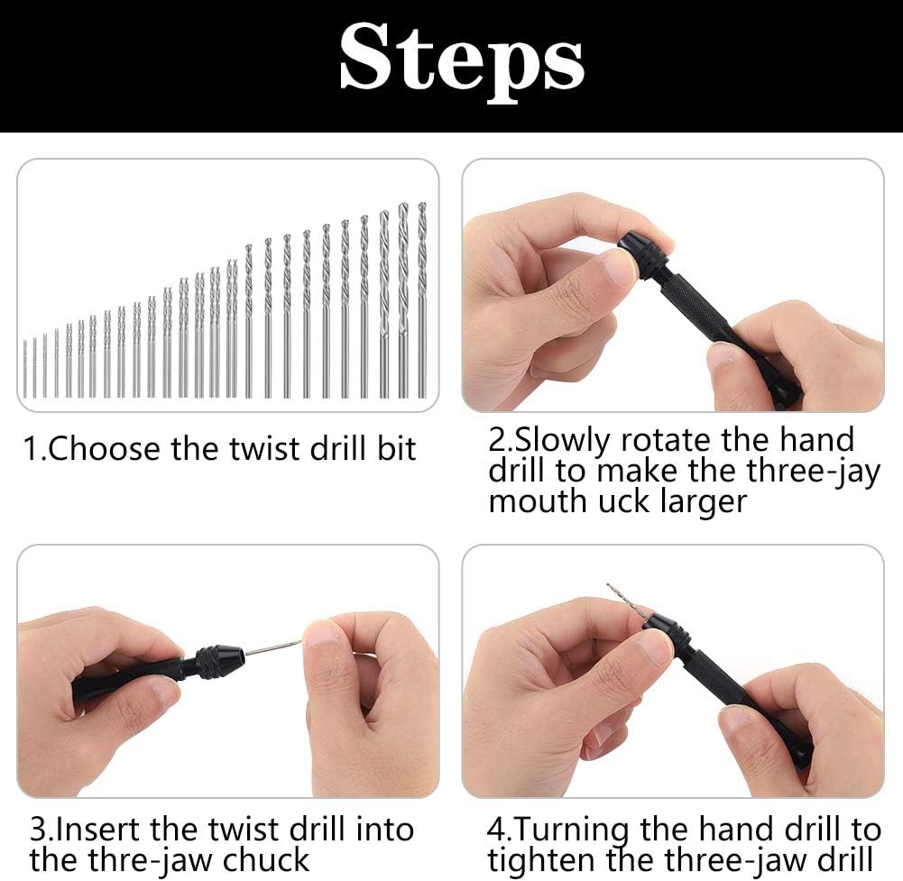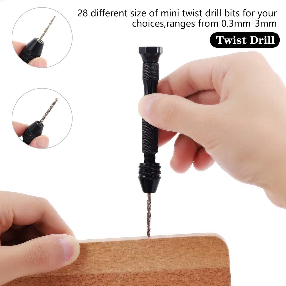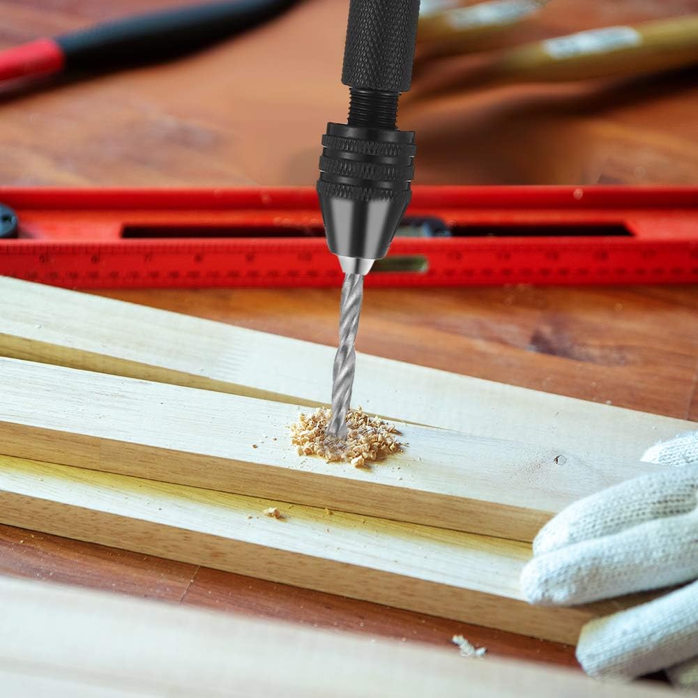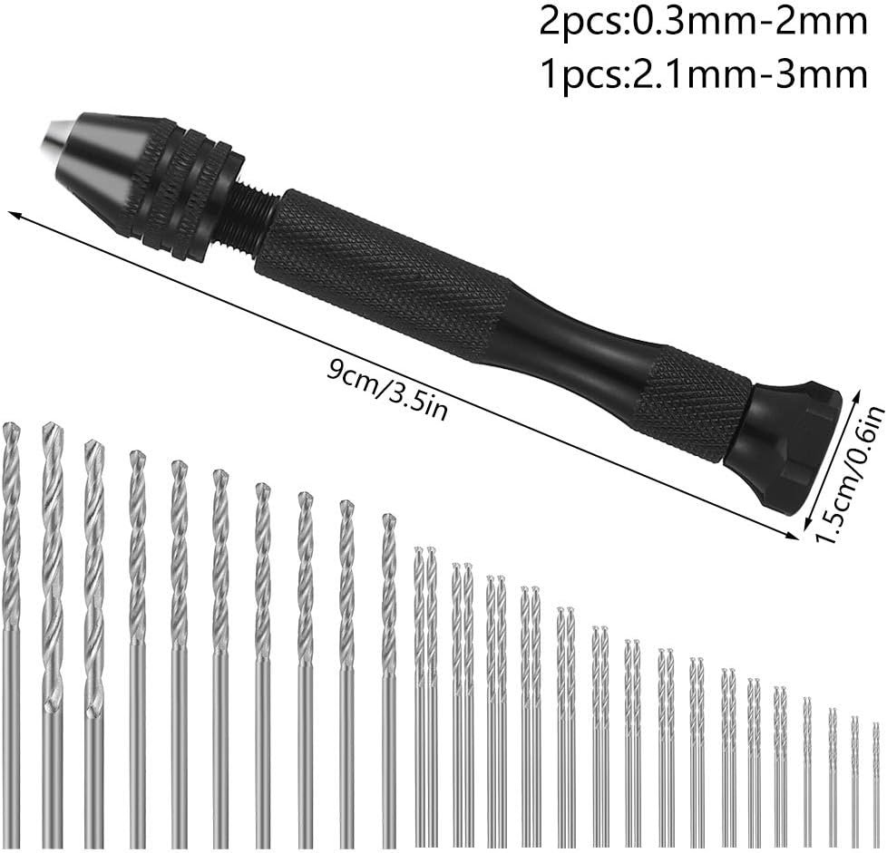 【Set punte trapano】: Questo set di punte da trapano manuale include 1 manico, 46 pezzi di mini punte trapano (0.3mm-2mm/2.1-3mm) e 10 pezzi di mini punte colorate (0.1-1.0mm), un totale di 57 pezzi per utensili da lavoro fai da te 【Materiale durevole 】: Realizzato in lega di alluminio, questo set punte avviatore è resistente e solido, adatto per qualsiasi hobby e lavoro di precisione 【Inserti per avvitatore professionali】: Il materiale metallico lo rende durevole per un uso prolungato. Dopo molte volte, la punta del trapano non scivola e non cade 【Set attrezzi da lavoro】: Le punte per trapano sono leggere e compatte, sono ottimi strumenti da applicare su legno, muro, plastica, gomma, PVC, noce, modello, osso, angolo, ambra, fibra di vetro e altri materiali 【Pratico e portatile】: Il set di trapani manuale è facile da trasportare e riporre in una cassetta degli attrezzi e in una tasca, adatto per il montaggio elettronico, strumenti, modellismo, avvolgimento, decorazione della casa, ecc