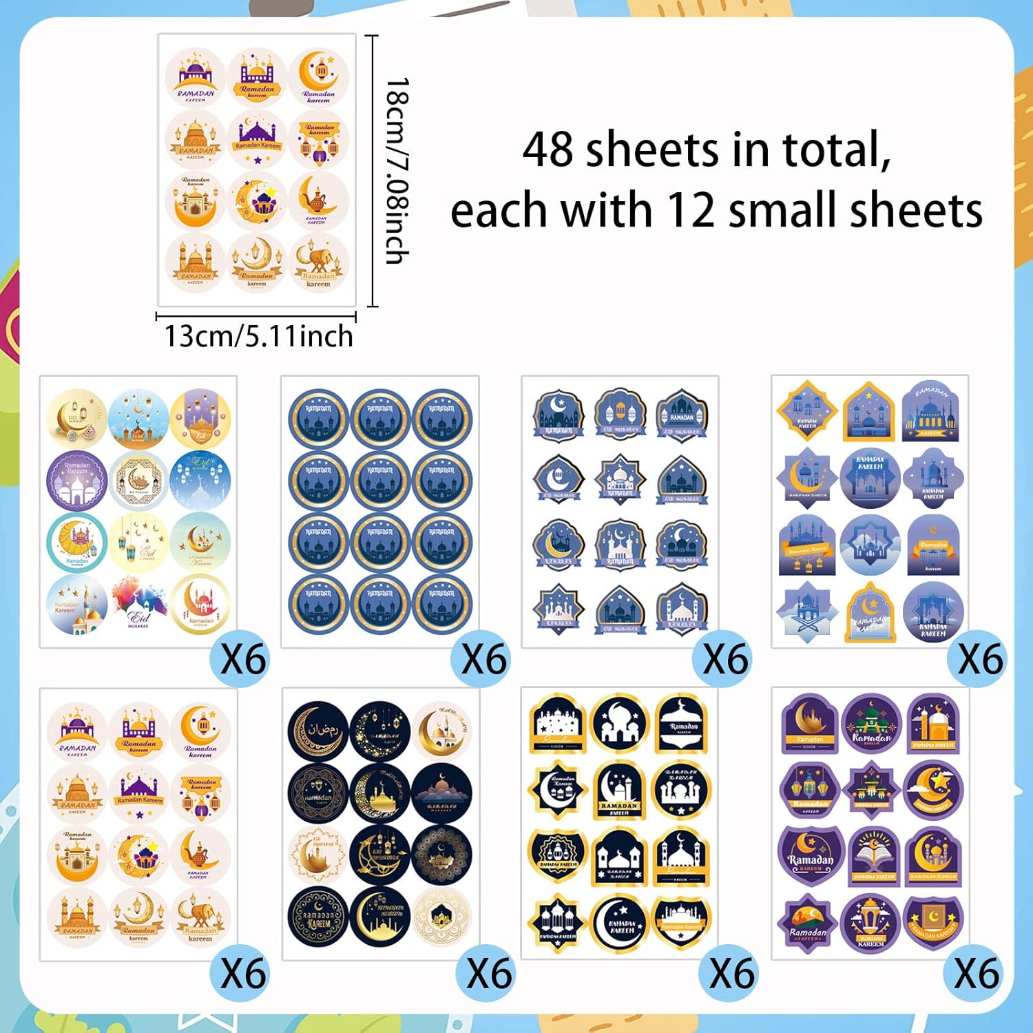 ✔ Adesivi Ramadan: il nostro kit contiene 48 fogli di adesivi Ramadan, con 12 adesivi Eid Mubarak per un totale di 576 pezzi. Gli stili sono vari, ben realizzati e la quantità è sufficiente per soddisfare le tue esigenze. ✔ Qualità premium: i nostri adesivi sono realizzati con carta e colla di alta qualità, hanno una stampa chiara, un bellissimo motivo, appiccicosi, non facili da staccare, sicuri, impermeabili e durevoli. ✔ Decorazione Ramadan: ogni adesivo contiene le lettere "Ramadan" e alcuni bellissimi disegni di elementi Ramadan come stelle, luna, portacandeline e castelli che riflettono facilmente il tema dell'Eid al-Fitr. Puoi decorare qualunque cosa tu voglia per celebrare il Ramadan. ✔ Etichette fai-da-te: puoi creare i tuoi regali Ramadan con la tua famiglia, puoi scegliere il tuo modello preferito dagli adesivi per rendere i tuoi regali Ramadan più belli e piaceranno ai bambini. ✔ Applicazioni: puoi applicare gli adesivi ovunque e gli adesivi con disegni diversi possono essere combinati con regali diversi. Adatto per decorare sacchetti di caramelle Ramadan, confezioni regalo, sacchetti di stoffa, etichette regalo, scatole regalo o buste e può anche essere incollato direttamente sui regali Ramadan.
