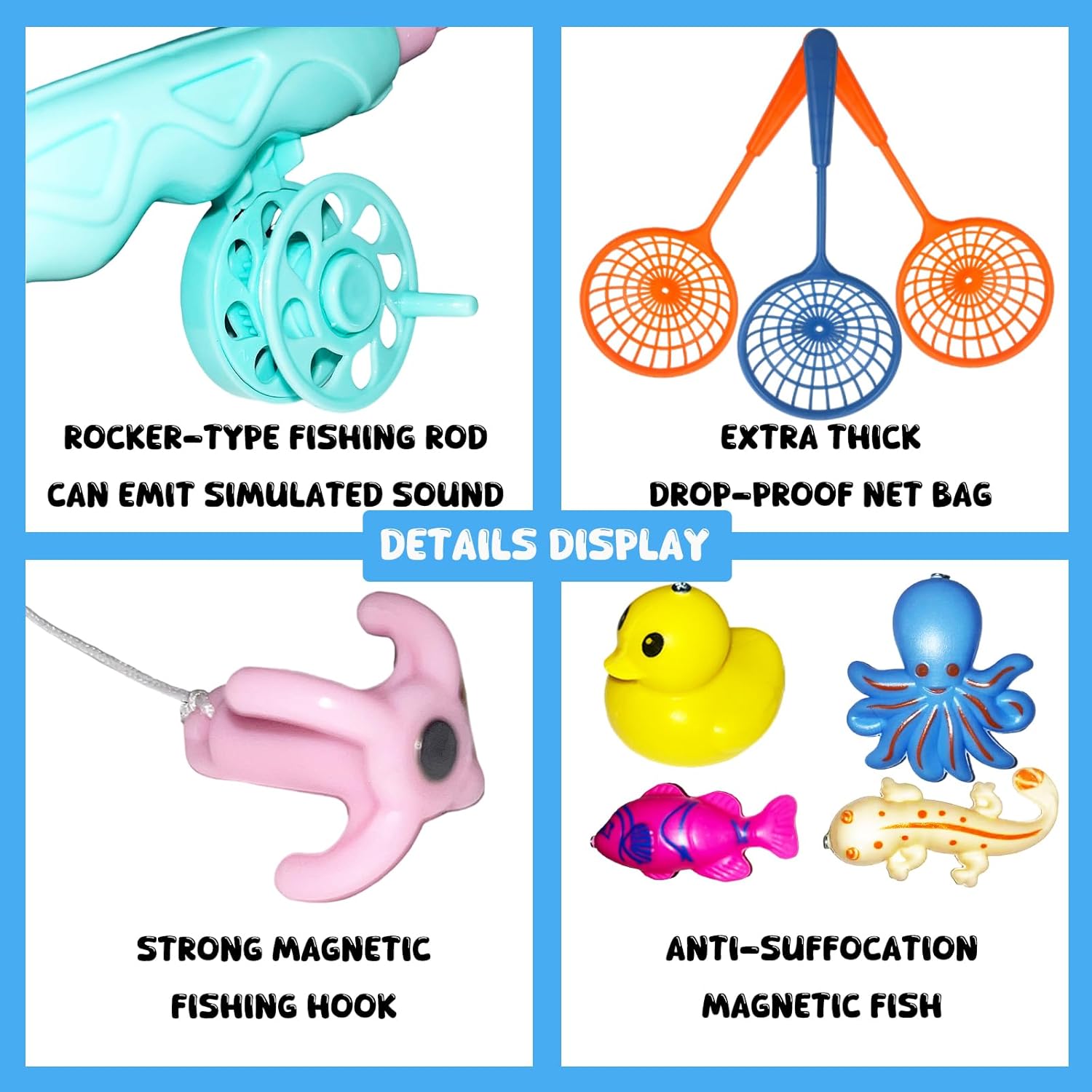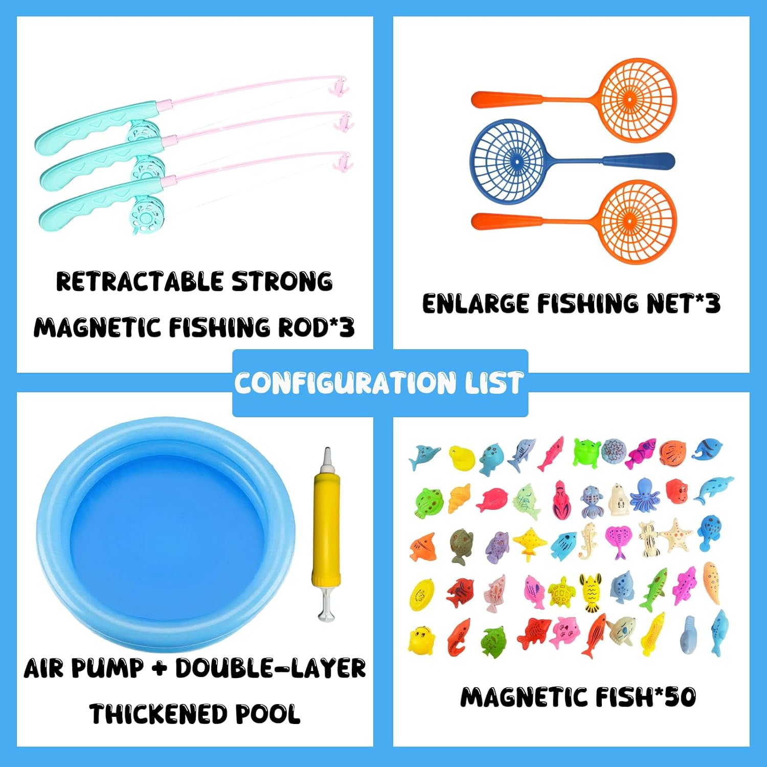 1️⃣ Set Completo Pesca Magnetica – Include 50 pesci galleggianti, 3 canne da pesca bambini, 3 retini e piscina blu doppio strato per giochi piscina bambini 2️⃣ Divertimento Acquatico e Bagnetto – Perfetto come giochi d’acqua per bambini, giochi bagnetto e pool party estivi con amici e famiglia 3️⃣ Educativo e Interattivo – Sviluppa coordinazione mano-occhio, riconoscimento dei colori e abilità sociali; ideale come giochi educativi 3 anni e oltre 4️⃣ Sicuro e Durevole – Plastica atossica e bordi lisci; magneti forti che mantengono i pesci fermi; adatto a giochi magnetici per bambini in vasca o all’aperto 5️⃣ Regalo Perfetto per Ogni Occasione – Confezione colorata, ideale come regalo bambina 3 anni o bambino, perfetto per compleanni, Natale e giochi gonfiabili per bambini