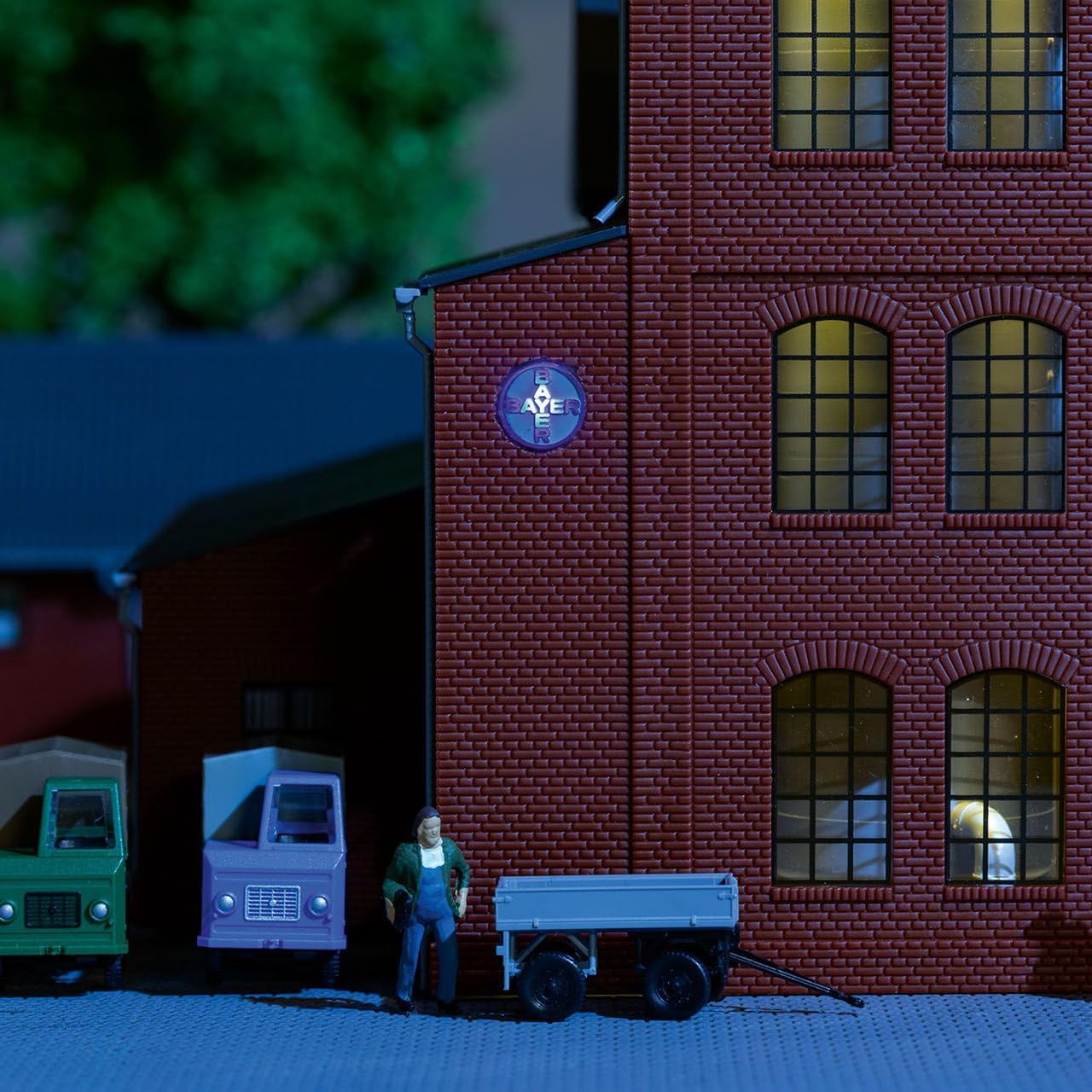 - Insegne luminose a LED con design BAYER per la scala TT - Kit per montaggio individuale su edifici - Alimentazione tramite porta USB - Per modellisti esperti con conoscenze di saldatura - Ideale per scene industriali e urbane - Garantisce una luce d'atmosfera autentica di notte