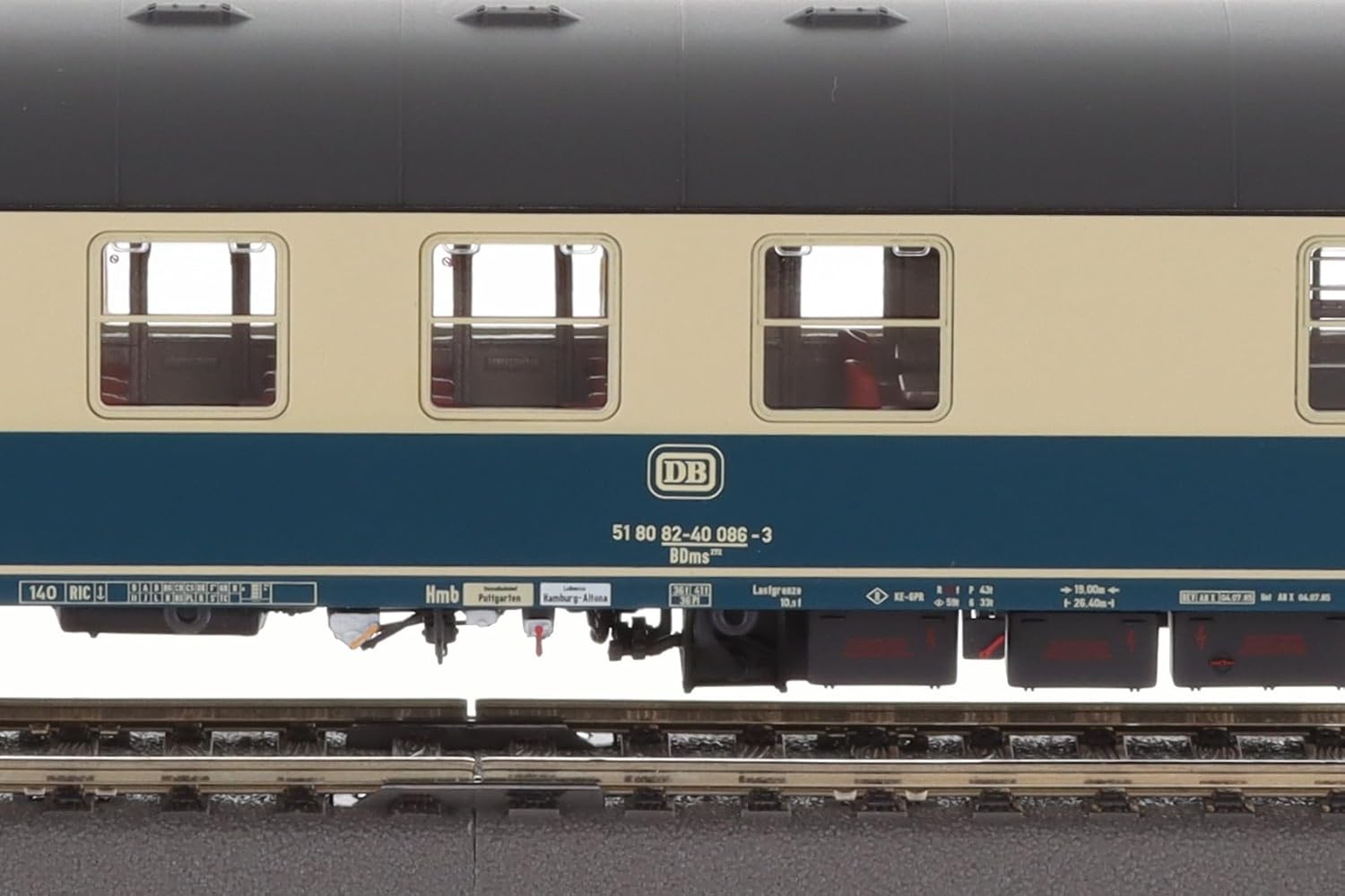 - Traccia: H0 - Epoca: IV Lunghezza tramite tampone: 303 mm - Pedali e barre extra montate - Esecuzione dei tetti saldati a colpo- Alternatore montato sul telaio - Set ruote di costruzione 094/096 con dischi ondulati su entrambi i lati - Compatibile con frizione elettrica della gamma BRAWA- Notte in scala Struttura della finestra- Decorazione interna adatta all'epoca, tallone in gomma a molla nella transizione, illuminazione interna incorporata, cinematica a frizione corta, corrente alternata