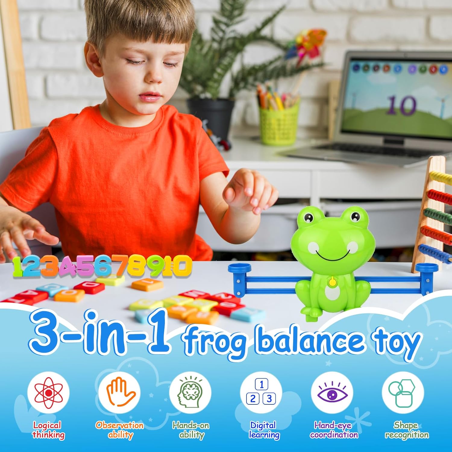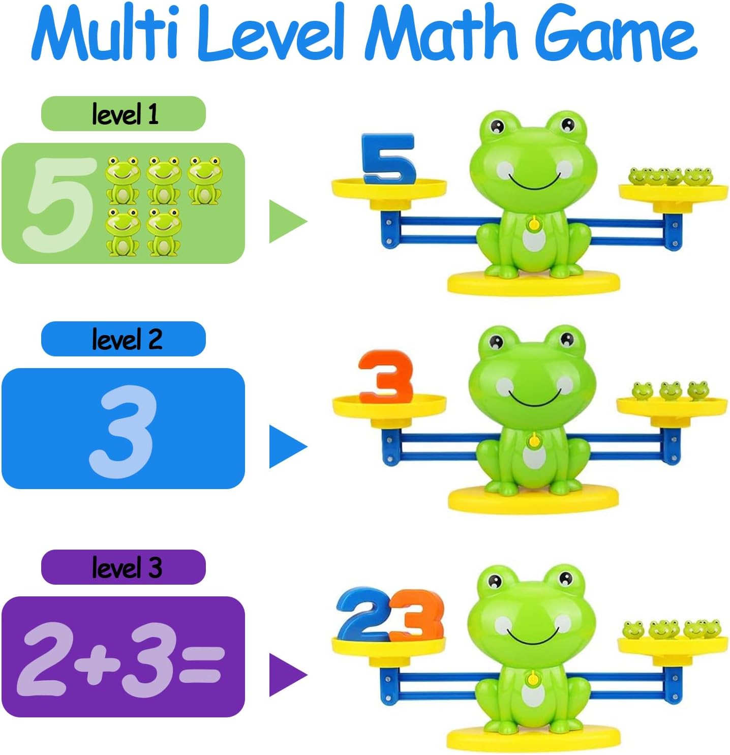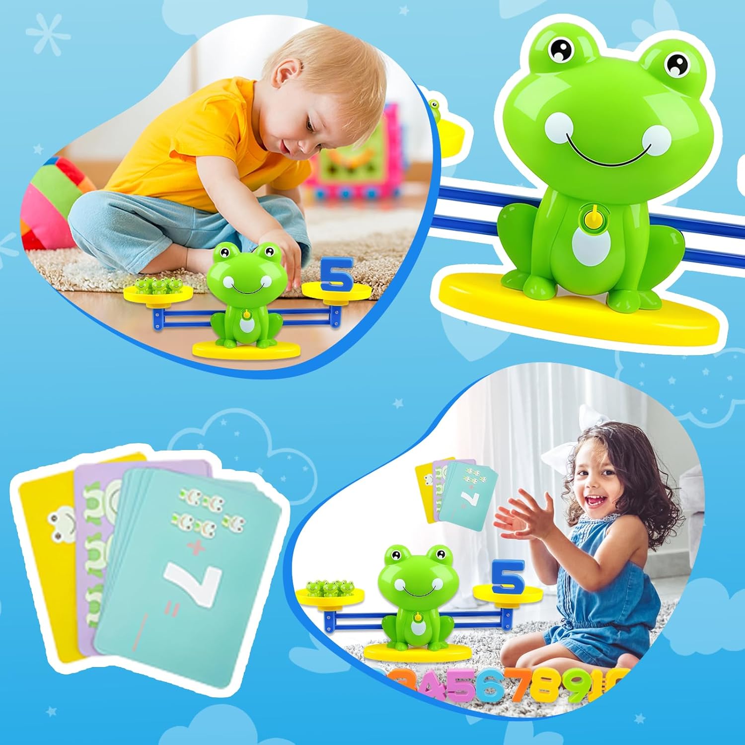 【Apprendimento Multisensoriale】: Apprendimento divertente dei numeri e del concetto di peso, Stimola la logica e la coordinazione mano-occhio。Stimola lo sviluppo cognitivo e la motricità fine manipolando 19 ranine colorate e 10 numeri sui 2 vassoi della bilancia educativa 【Competenze Matematiche Base】: Padroneggia riconoscimento numerico addizione e sottrazione con 30 carte sfida che trasformano concetti astratti in giochi pratici di confronto pesi 【Gioco Collaborativo】: Ideale per attività di gruppo prescolari promuove comunicazione e lavoro di squadra mentre i bambini risolvono problemi insieme 【Metodo Montessori】: Allineato alla pedagogia Montessori favorisce apprendimento autonomo attraverso sperimentazione e autocorrezione dai 3 anni 【Regalo Educativo Intelligente】: Perfetto regalo compleanno 3-5 anni unisce divertimento e acquisizione duratura di competenze scientifico-matematiche