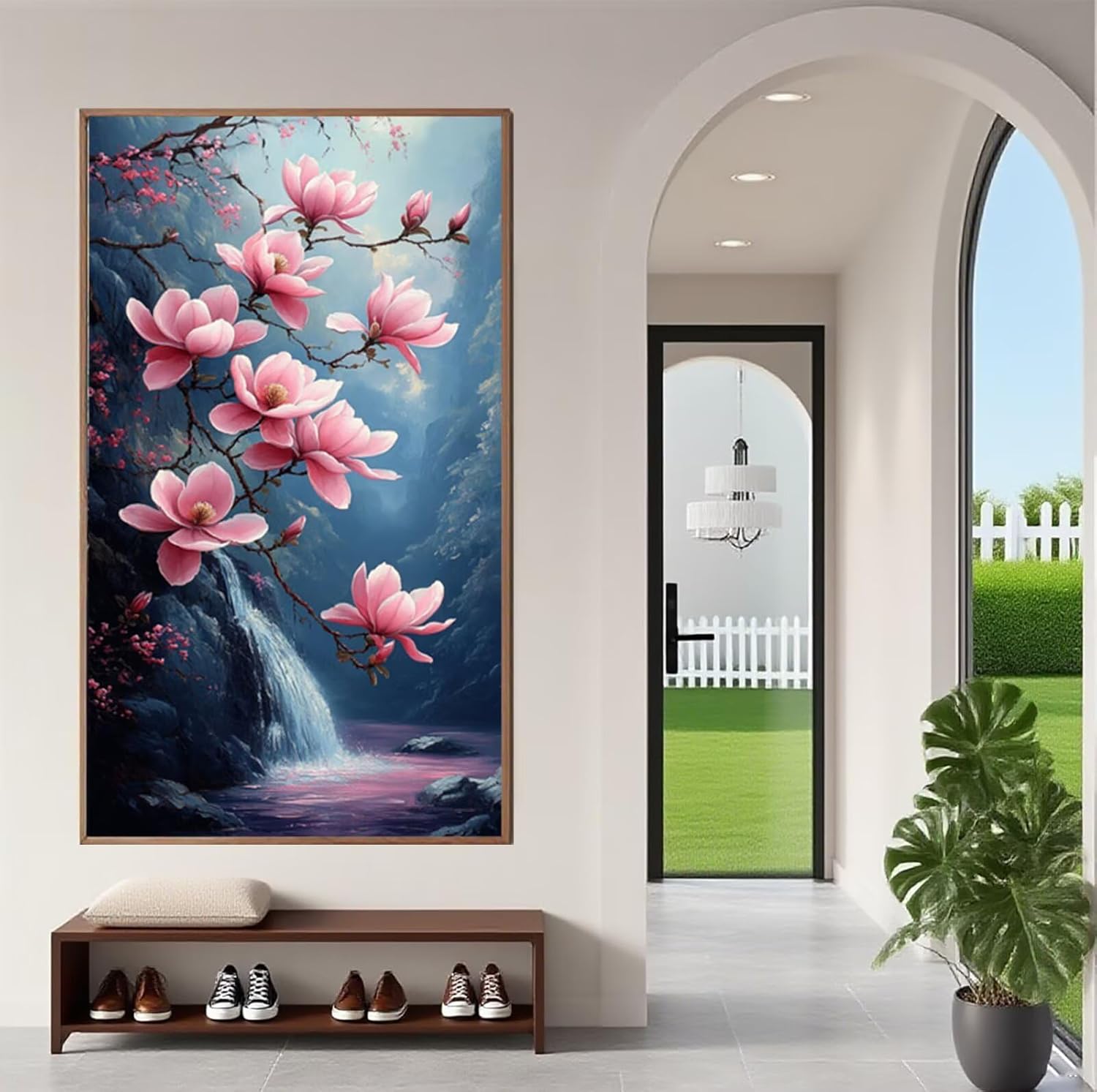 5D Autunno Diamond Painting Kit Completo per Adulti Principianti, Magnolia Pittura Diamante Painting Kit Ricamo a Punto Croce Artigianale, DIY Diamantini Crystal Art per Decorazioni 30x60 cm o-232