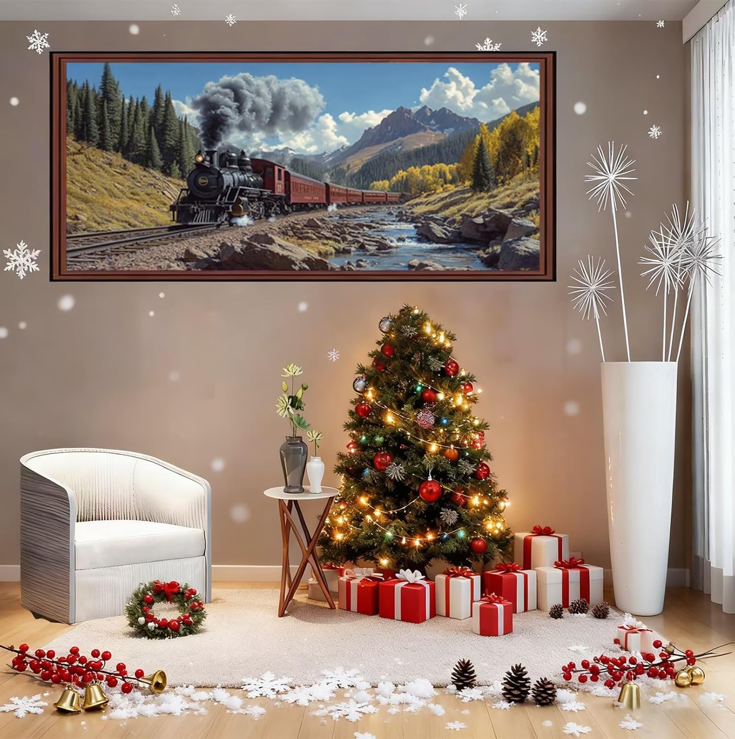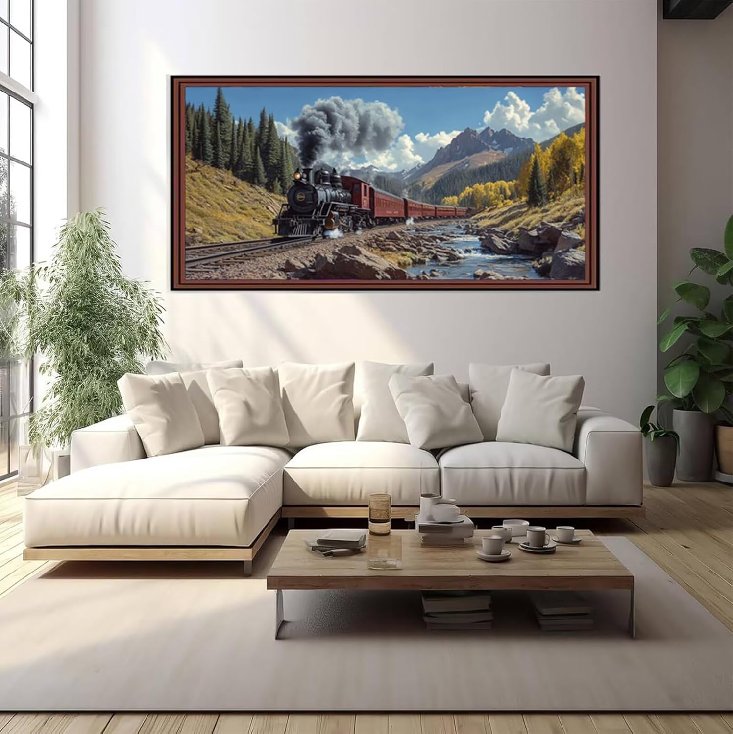 5D Autunno Diamond Painting Kit Completo per Adulti Principianti, Treno Pittura Diamante Painting Kit Ricamo a Punto Croce Artigianale, DIY Diamantini Crystal Art per Decorazioni 80x160 cm o-1278