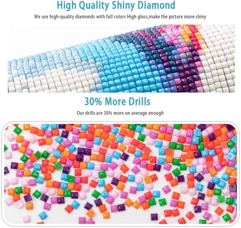 Diamond Painting Kit Completo: include una tela stampata in HD, un sacco di diamanti, una penna per diamanti, un tampone di cera e un vassoio. Tutti gli strumenti sono inclusi, rendendolo semplice da usare sia per adulti che per bambini principianti, consentendo loro di godersi il processo creativo Design Premium Full Drill: presenta diamanti in resina di alta qualità con colori vivaci e una lucentezza duratura, che coprono l'intera tela per un effetto 5D più vivido e realistico, rendendo la tua opera d'arte davvero scintillante Tela HD: utilizzando una tecnologia di stampa ad alta definizione di livello professionale, i motivi sono chiari e i simboli sono facili da identificare, garantendo la possibilità di individuare con precisione ogni diamante durante il processo creativo, migliorando l'efficienza produttiva e la squisitezza del lavoro finale Selezione Temi Diversi: offre una varietà di temi popolari, tra cui incantevoli alberi scintillanti, vivaci animali dei cartoni animati e paesaggi sereni, soddisfacendo diverse preferenze e aggiungendo un tocco artistico alla tua casa o al tuo ufficio Regalo Perfetto Decorazioni Casa: il dipinto a diamante completato è un'opera d'arte unica, perfetta per decorare soggiorni, camere da letto, studi e altro ancora. È anche un regalo di compleanno o di festa premuroso e creativo per amici e familiari