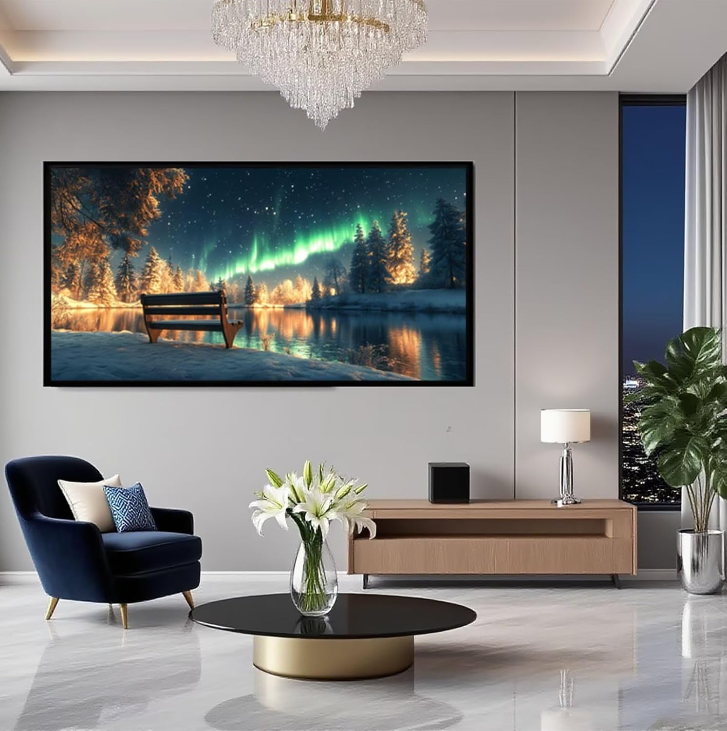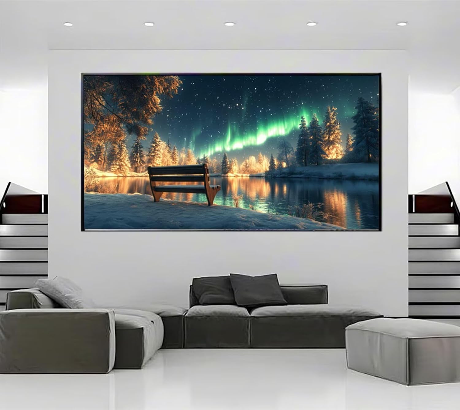 5D Diamond Painting Kit Completo Aurora Diamond Painting Grandi Dimensioni 100x50 cm, Diamantini Crystal Art Kit Pittura Adulti, DIY Lago Strass Ricamo a Punto Croce per Adulti Decorazione c-6114