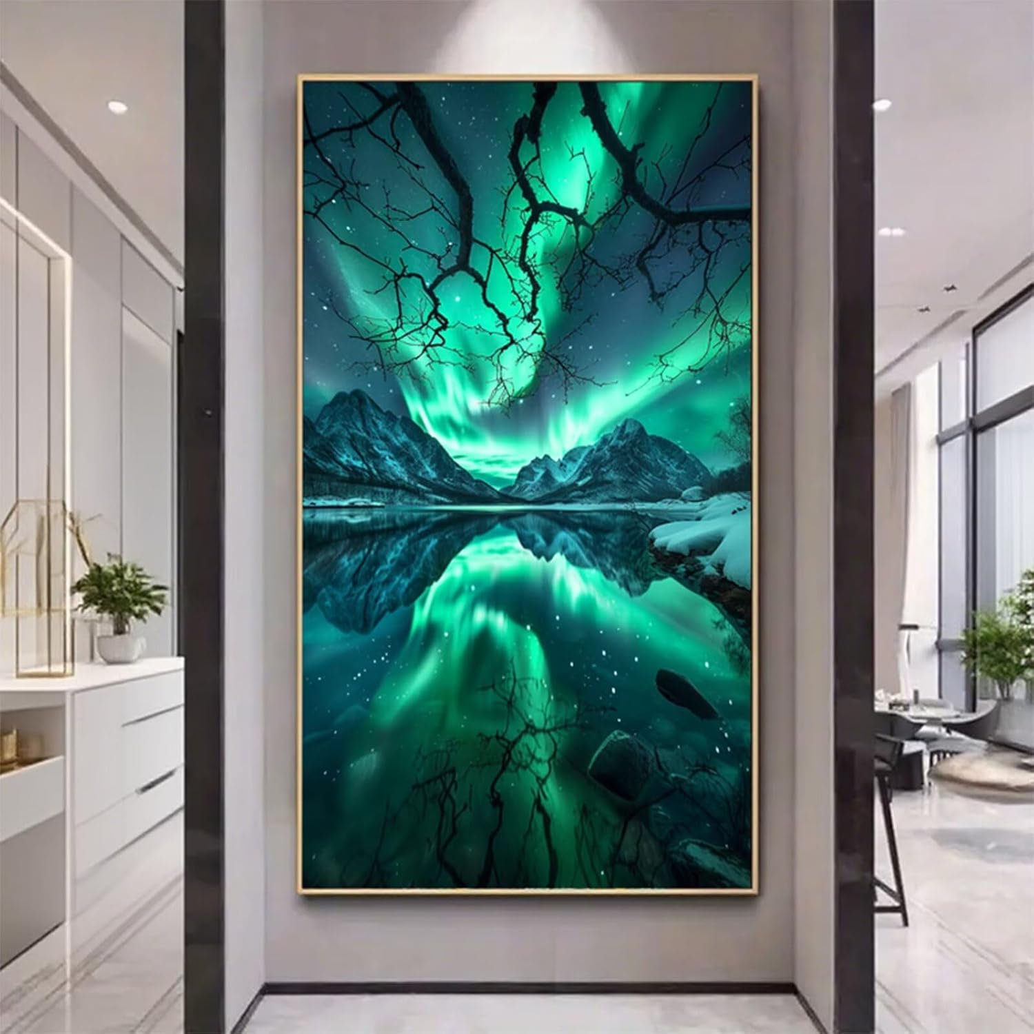 5D Diamond Painting Kit Completo Aurora Diamond Painting Montagna Pittura Diamante Adulti,Mosaico Quadri con Perline,DIY Diamantini Crystal Art Hobby Creativi Adulti,Decorazioni Casa 120x60cm X2-1075