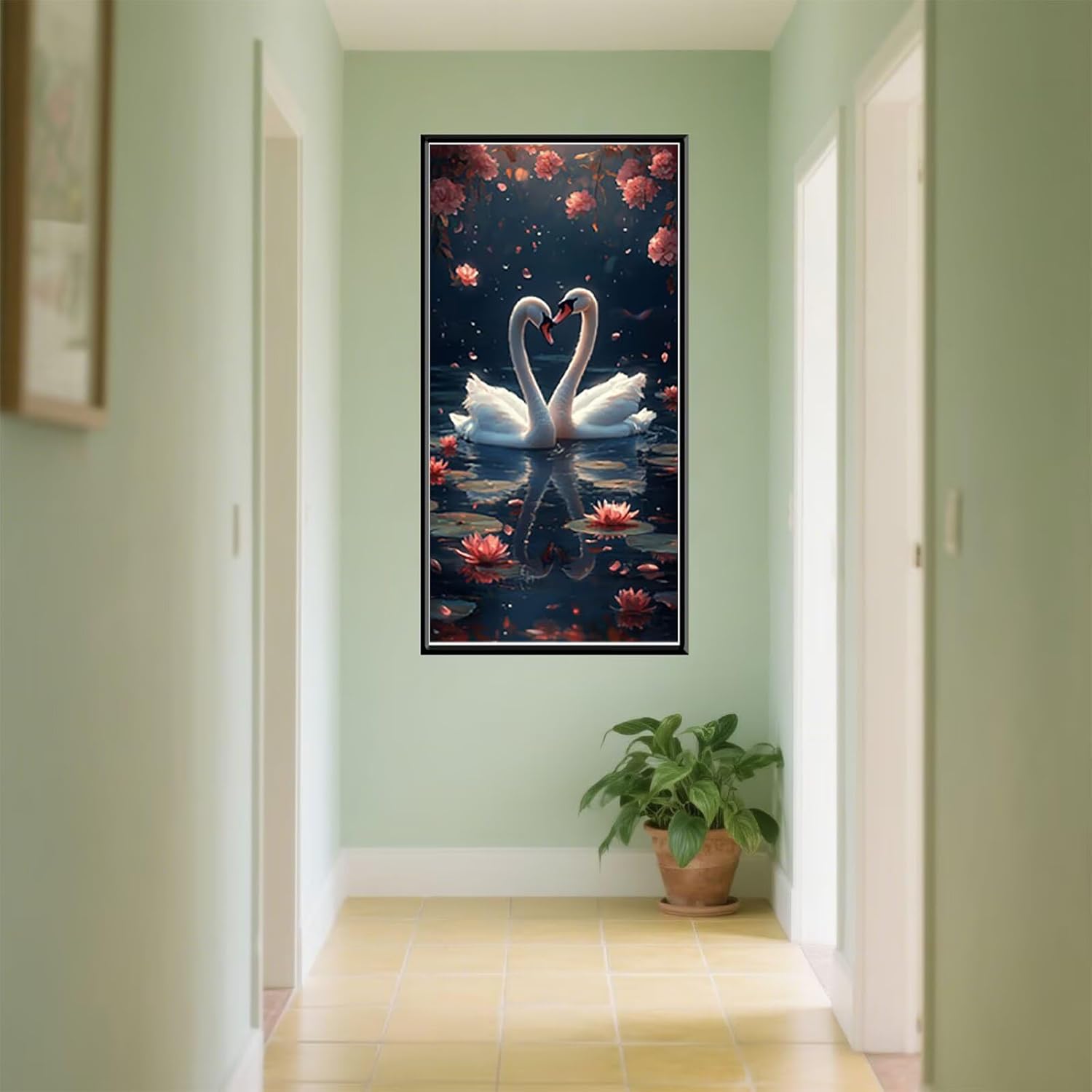 5D Diamond Painting kit Completo Cigno Diamond Painting Bambina Passatempo per Adulti Disegni con Perline da Attaccare Loto Pittura Diamante DIY Diamantini Crystal Art Quadri Set 70x140cm f-7485