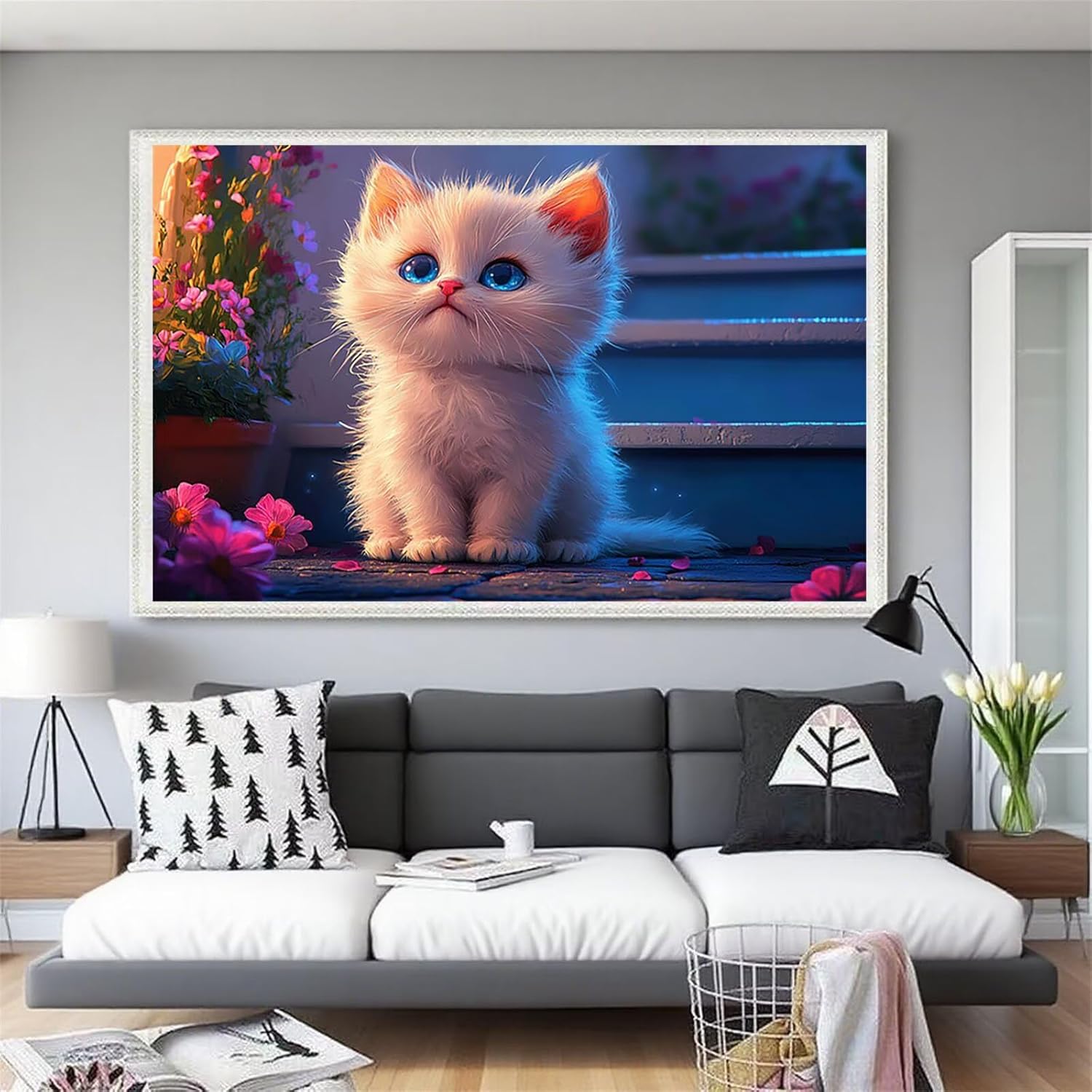 5D Diamond Painting Kit Completo Gatto Diamond Painting Bambina, Kit di Pittura Diamante Animale Passatempo per Adulti, DIY Diamantini Crystal Art Hobby Creativi Adulti, Decorazioni 60x80 cm K-8758