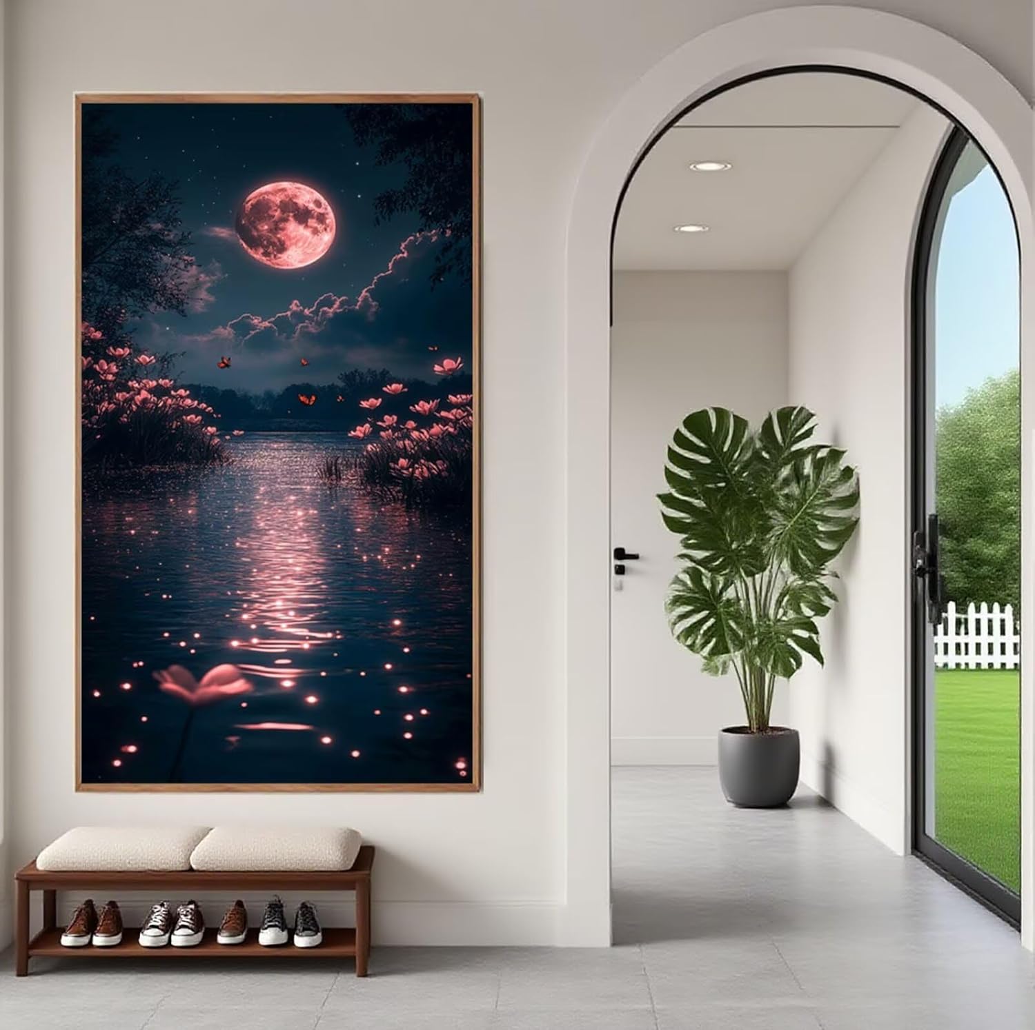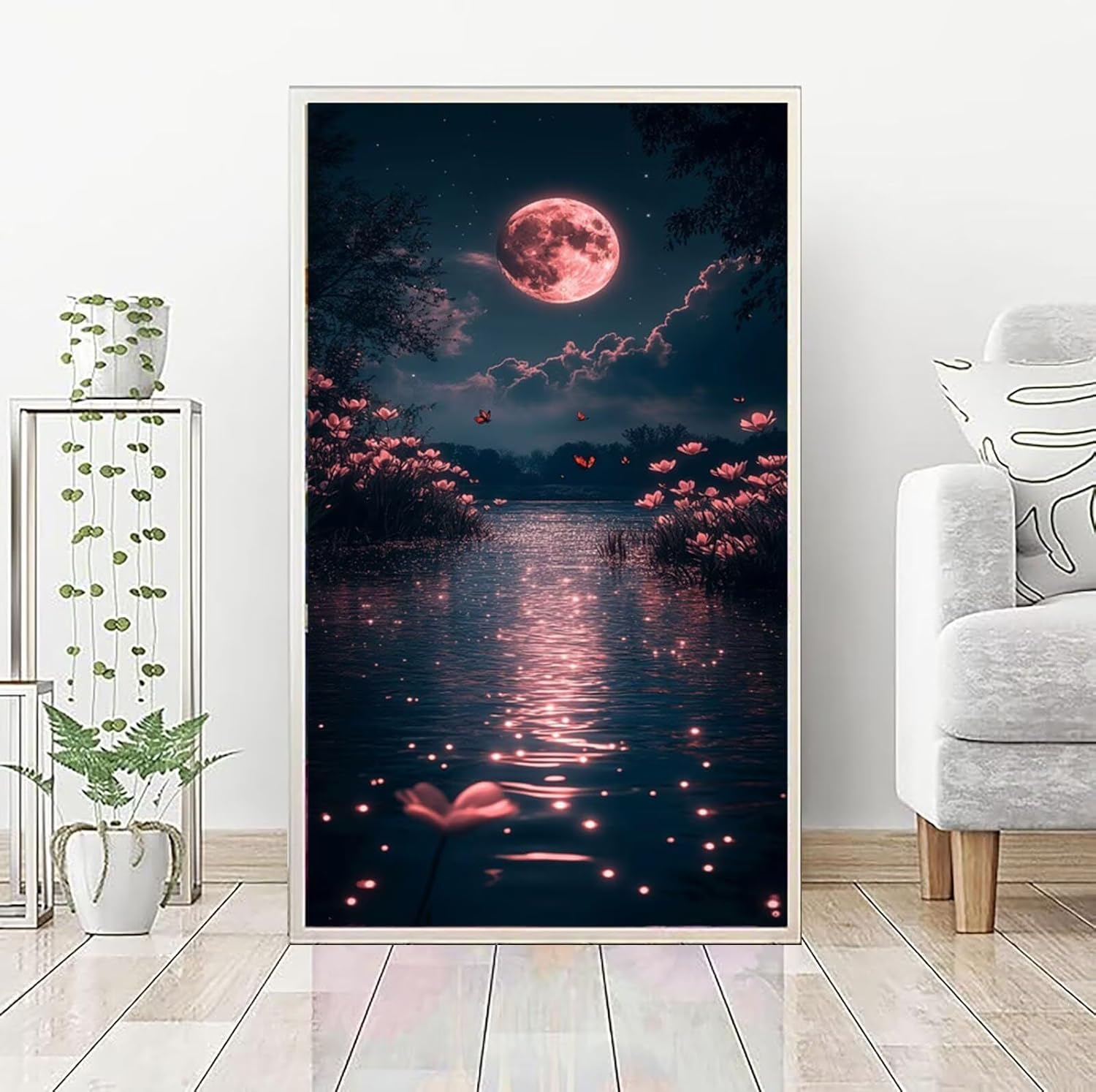 5D Diamond Painting Kit Completo Lago Diamond Painting Grandi Dimensioni 70x140 cm, Diamantini Crystal Art Kit Pittura Adulti, Luna Strass Ricamo a Punto Croce per Adulti Decorazione da Parete c-4897