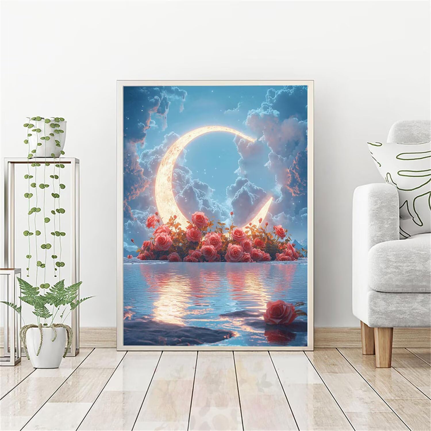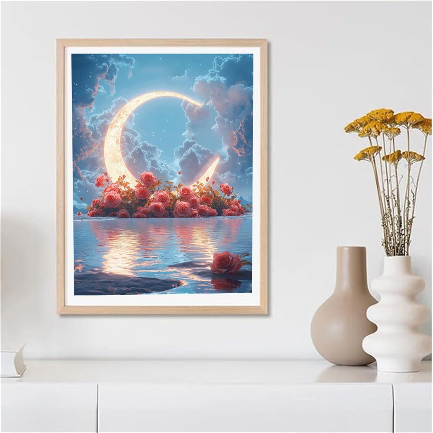 5D Diamond Painting Luna, Sulla Spiaggia Diamond Painting Kit Completo, Passatempo per Adulti Principianti, Diamantini Crystal Art Bambini, Strass Ricamo Punto a Croce, Decorazione Interna 40x50cm 472