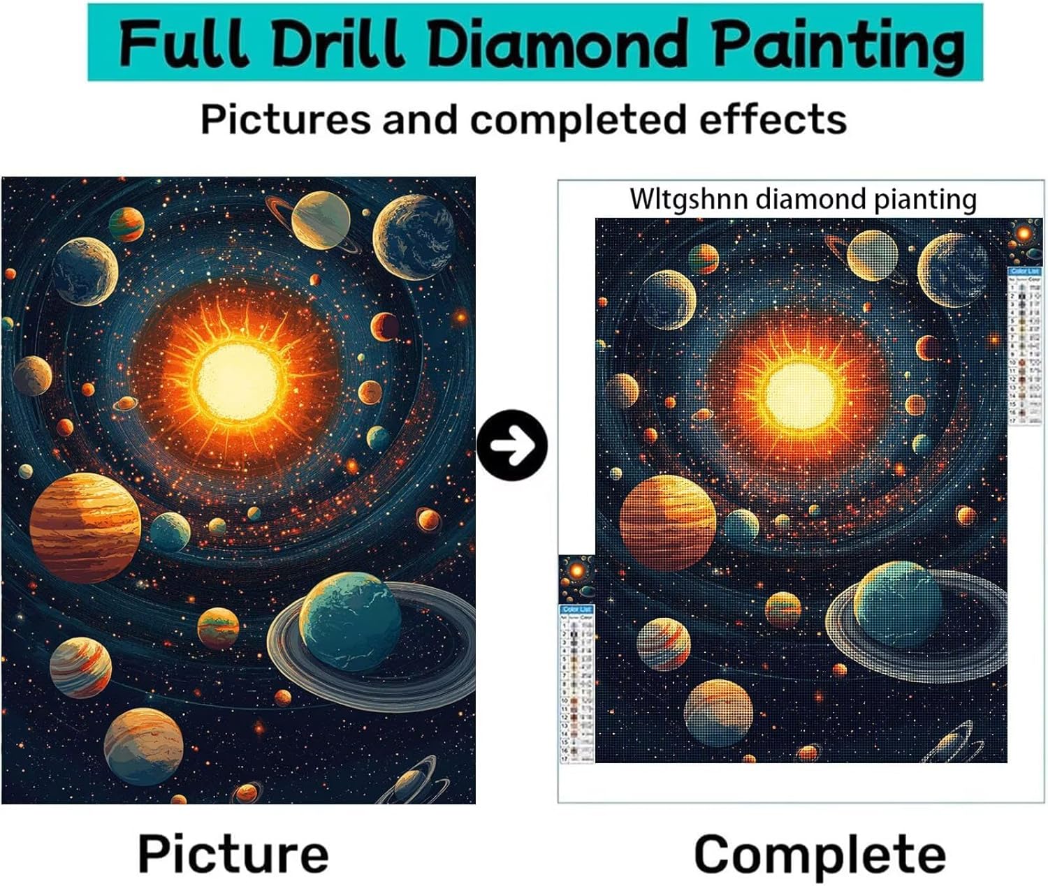 5D Diamond Painting Sole Diamond Painting Kit Adulti Bambini, DIY Full Diamanti Mosaico Cristallo Art 90x120cm, Universo Diamantini Ricamo a Croce Accessori, Applicabile Autunno Decorazione Casa w-750