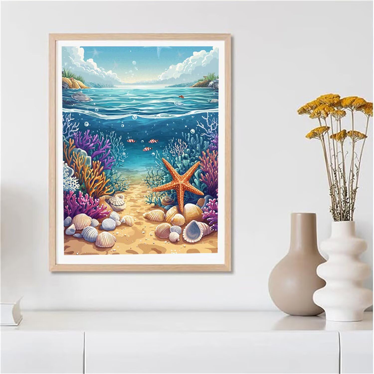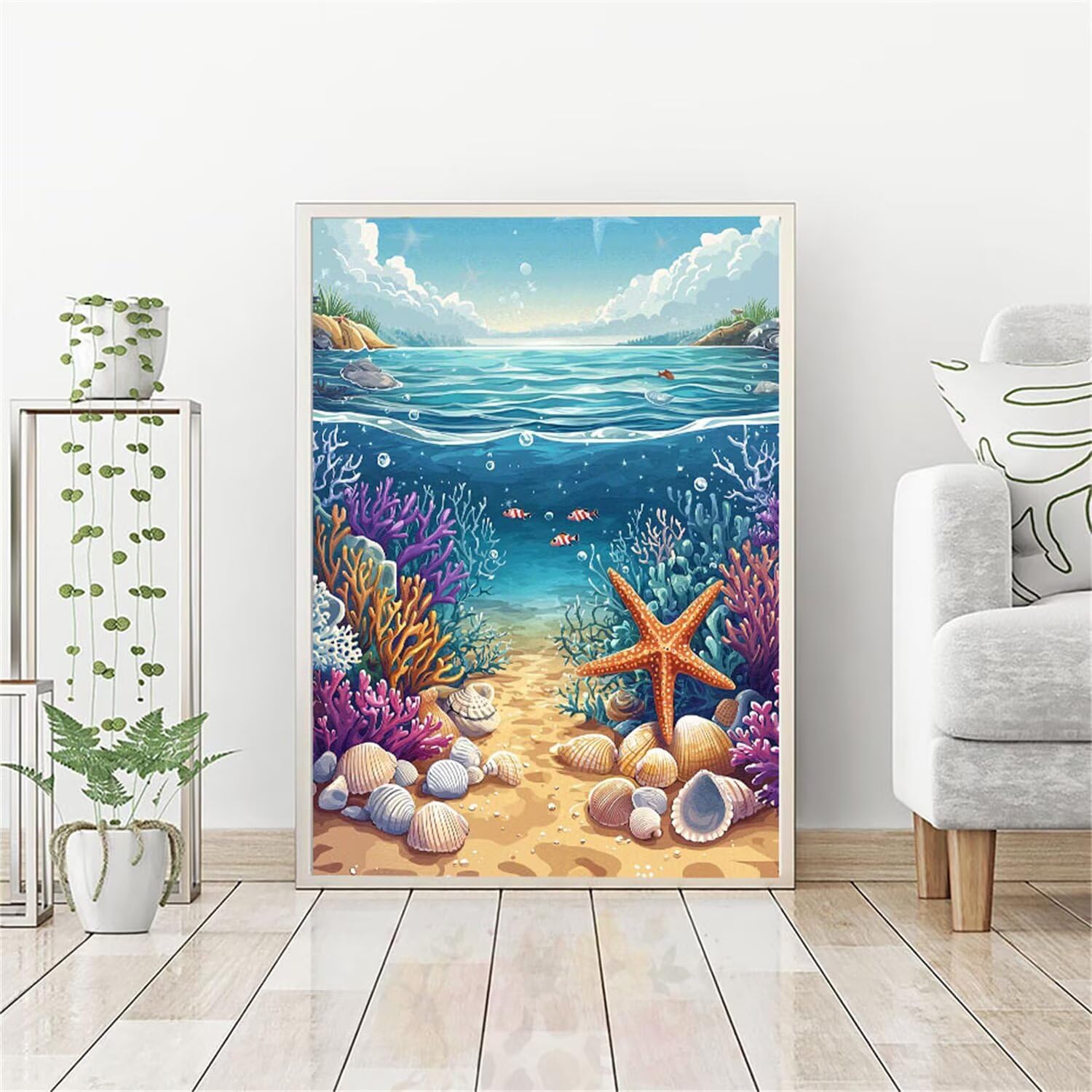 5D Diamond Painting Sulla Spiaggia, Conchiglie Diamond Painting Kit Completo, Passatempo per Adulti Principianti, Diamantini Crystal Art Bambini, Strass Ricamo Punto a Croce, Decor Interna 25x40cm A76