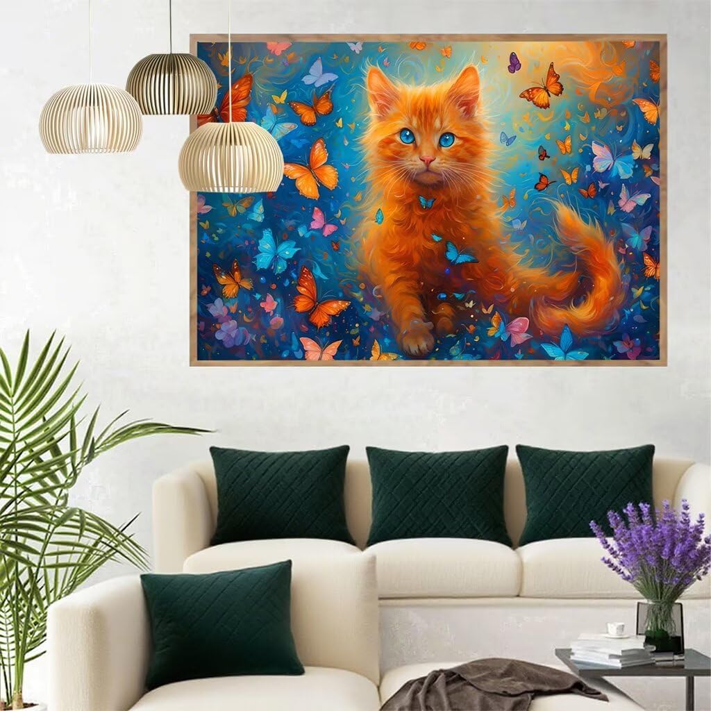 5D Farfalla Diamond Painting Gatto Diamond Painting Kit Completo, Pittura Diamante Adulti Bambini Diamantini Crystal Art Strass Ricamo Punto Croce Arte Fai da Te, Decorazione Murale 30x40 cm Q4-1002