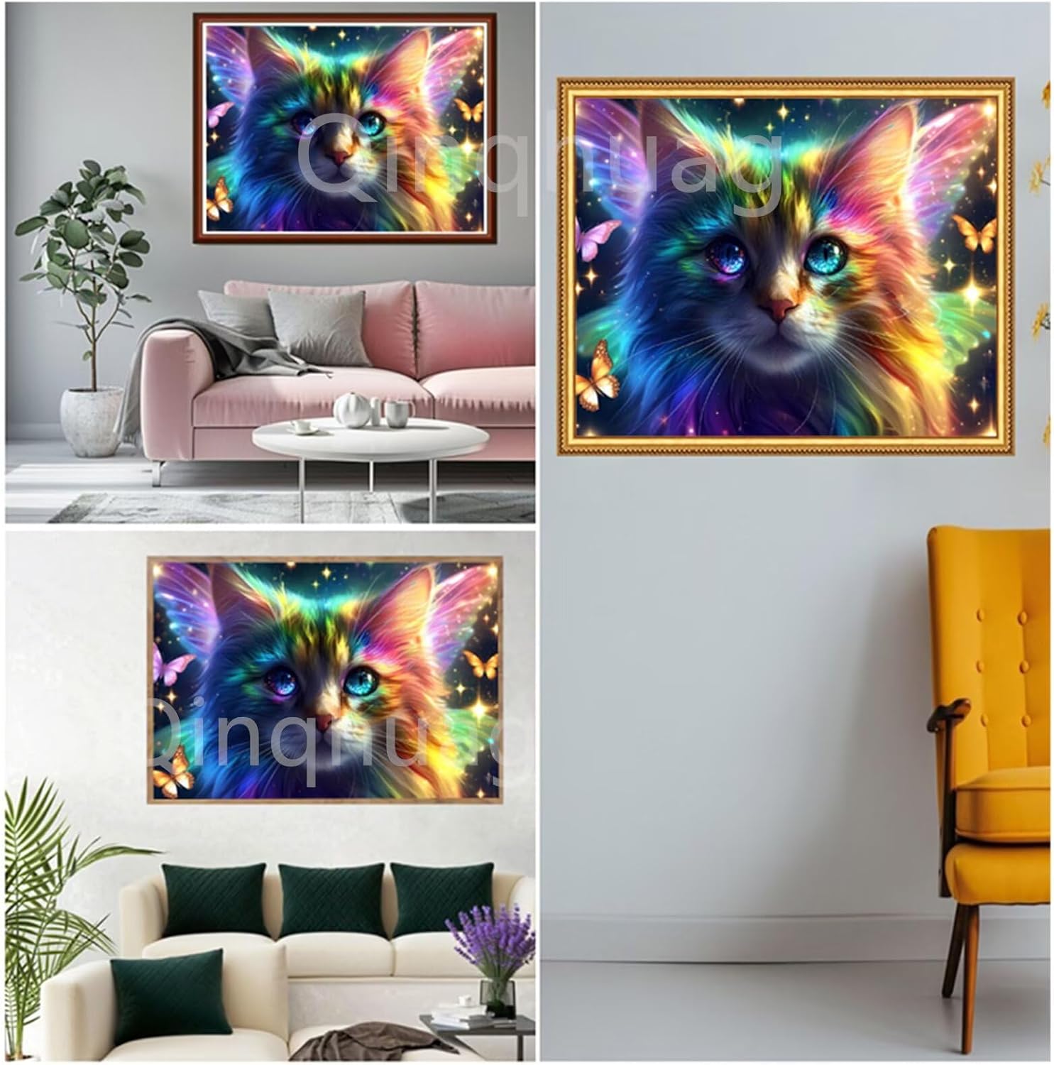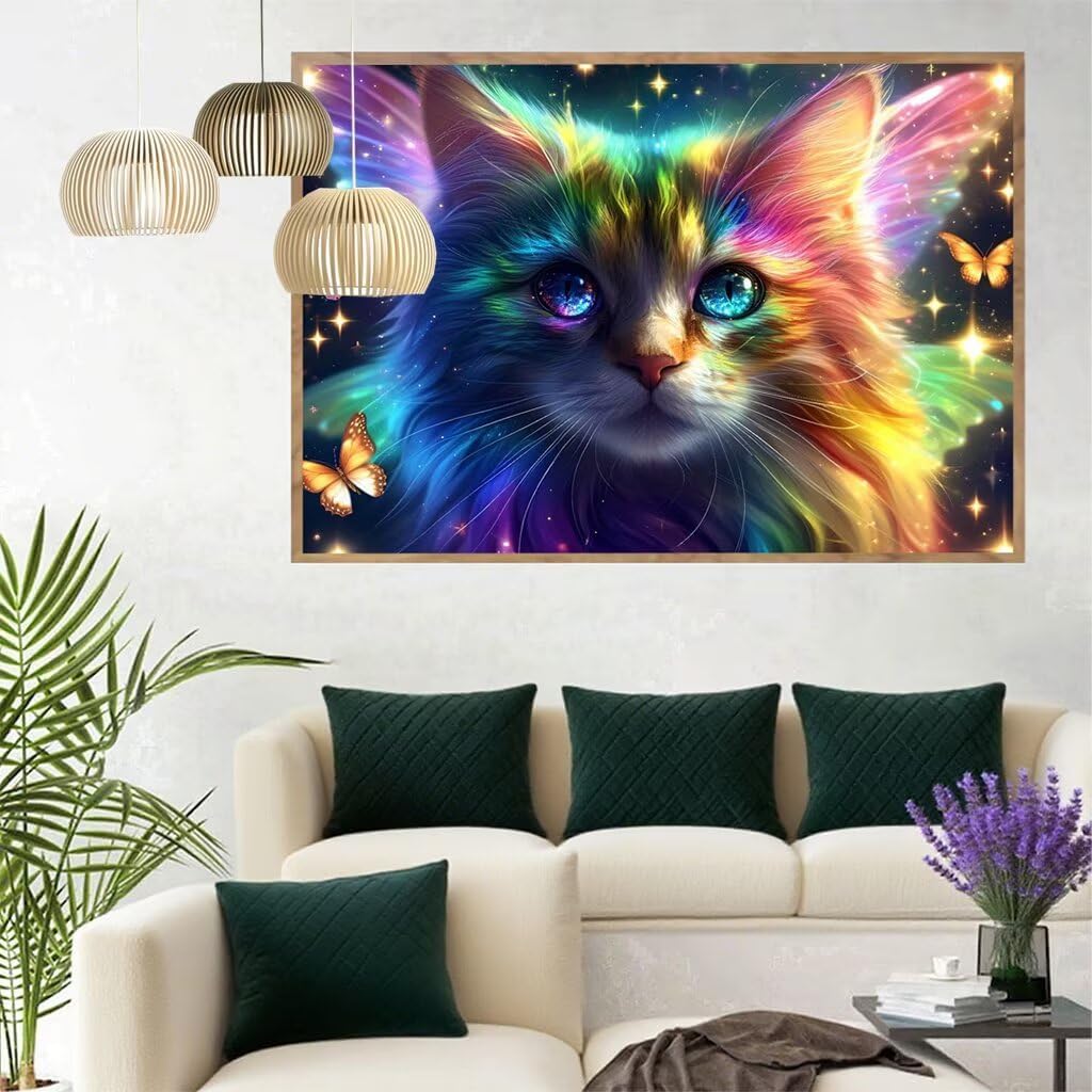 5D Farfalla Diamond Painting Gatto Diamond Painting Kit Completo, Pittura Diamante Adulti Bambini Diamantini Crystal Art Strass Ricamo Punto Croce Arte Fai da Te, Decorazione Murale 90x120 cm Q4-1230
