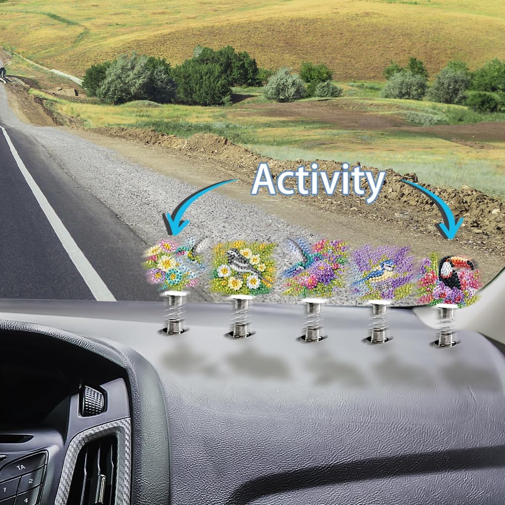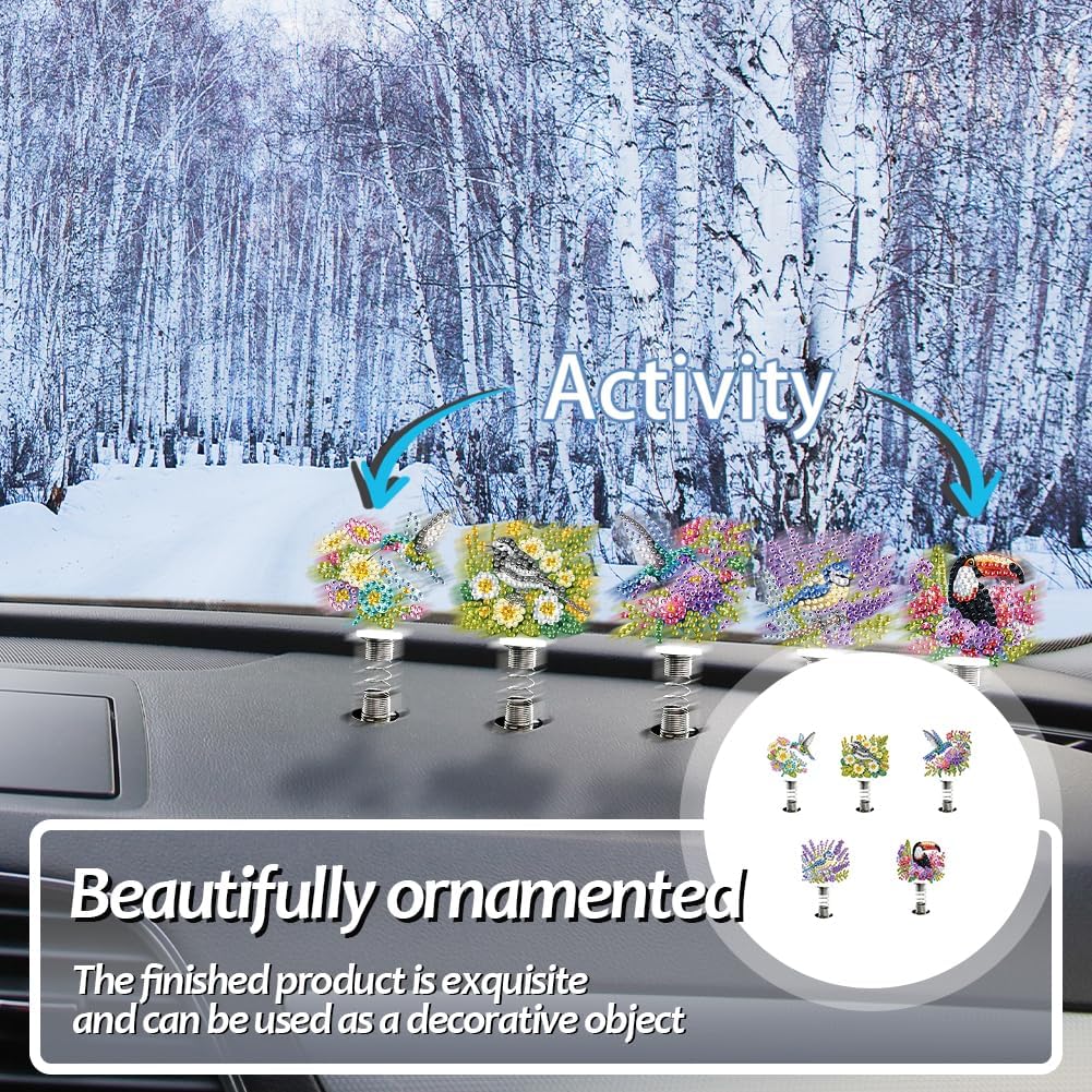UNIQUE DESIGN: Add a touch of humor to your space with this DIY diamond decor. It serves as an exquisite tabletop decoration, infusing fun and warmth into your surroundings. INTERACTIVE MOVEMENT: Experience the charm of acrylic car decoration springs, featuring a swinging design that keeps pace with your car's movement, injecting life into every ride. INDOOR DELIGHT: Use these tabletop decors springs to brighten up interiors, offering a unique conversation starter that enlivens any space. ENGAGING FUN: Enjoy a creative session with DIY diamond painting shake car ornaments, resulting in a colorful piece that makes your commute or desk setup more enjoyable. INCLUSIVE SET: Our desktop diamond art kits come complete with all essentials to create a captivating decoration, for various environments.