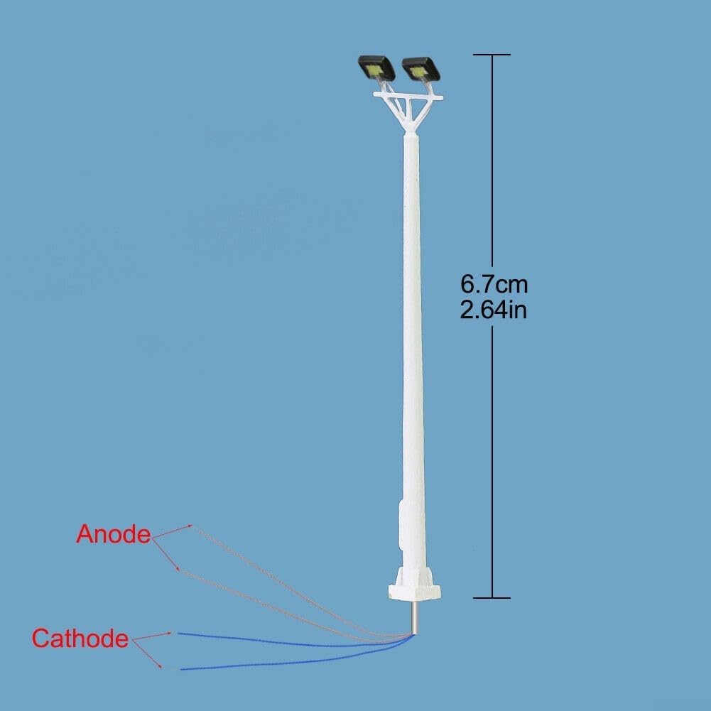 Perfetto per modellismo ferroviario e layout degli edifici: migliora l'autenticità del tuo modellino ferroviario o del layout dell'edificio con queste luci spaziali in scala N. Sono progettati per adattarsi perfettamente alle tue scene in miniatura, aggiungendo un tocco realistico all'atmosfera generale. Due LED per un'illuminazione luminosa: ogni palo della lampada è dotato di due LED bianchi, fornendo un'ampia illuminazione per il tuo modello o diorama. Le luci brillanti daranno vita al tuo mondo in miniatura, creando un'esperienza visiva accattivante. Illumina le tue creazioni: con i cavi e i LED inclusi, questi lampioni possono essere facilmente collegati e illuminati. Illumina strade, parchi o qualsiasi altra area del tuo modellino ferroviario con queste luci funzionali e realistiche. 【Corrente di funzionamento ottimale per una maggiore durata】Per la longevità dei LED, si consiglia di applicare la corrente di funzionamento corretta di 20 mA a ciascun LED. Ciò non solo massimizzerà la durata delle luci, ma manterrà anche la loro luminosità e prestazioni nel tempo.