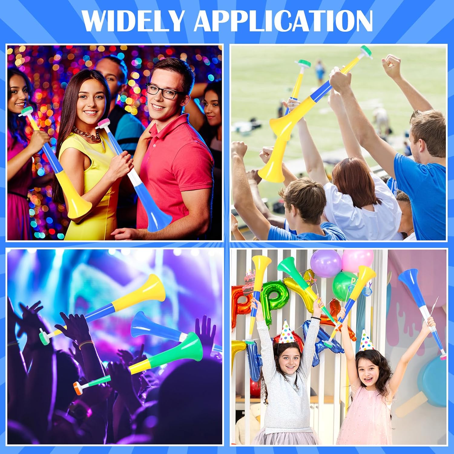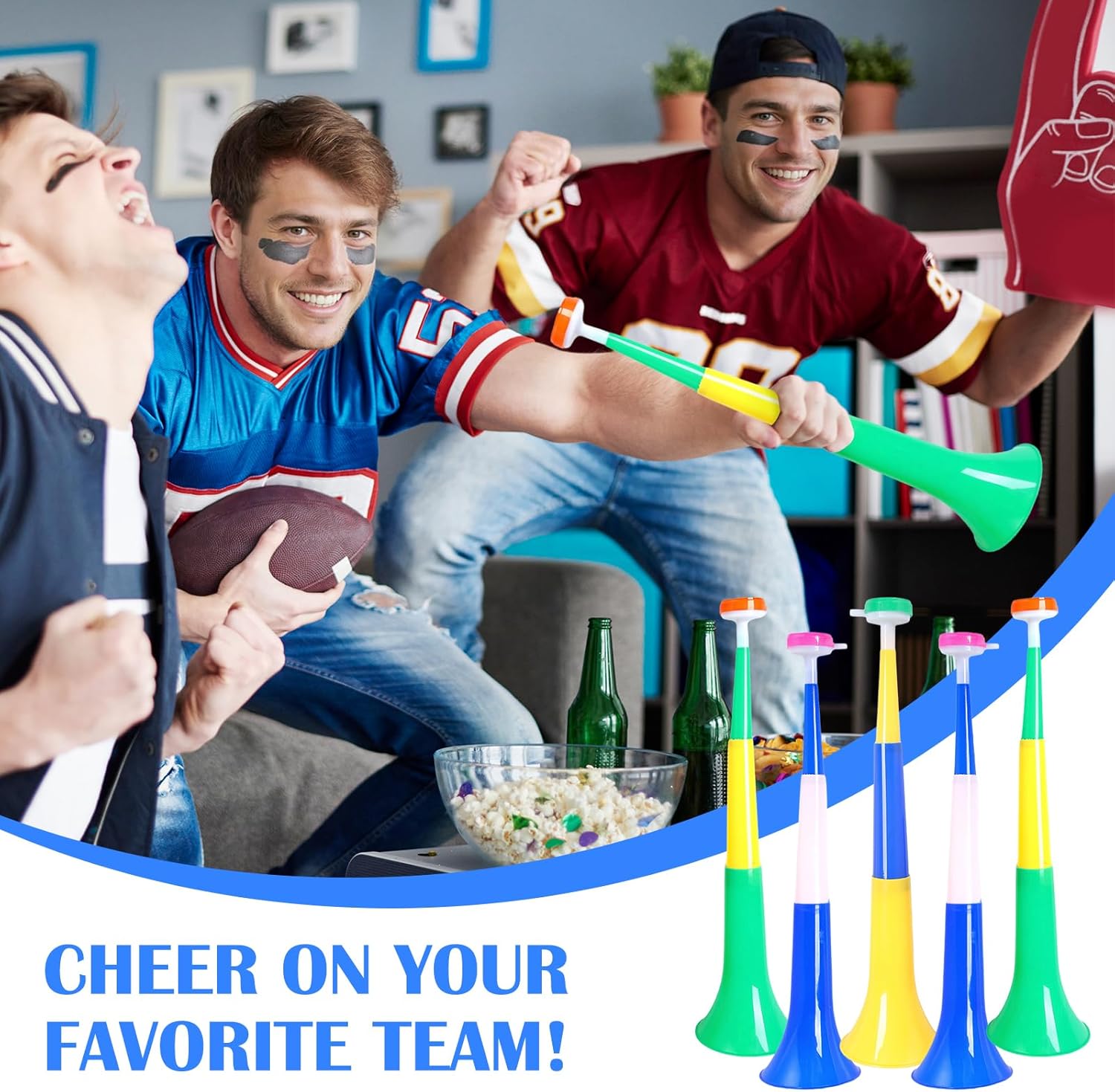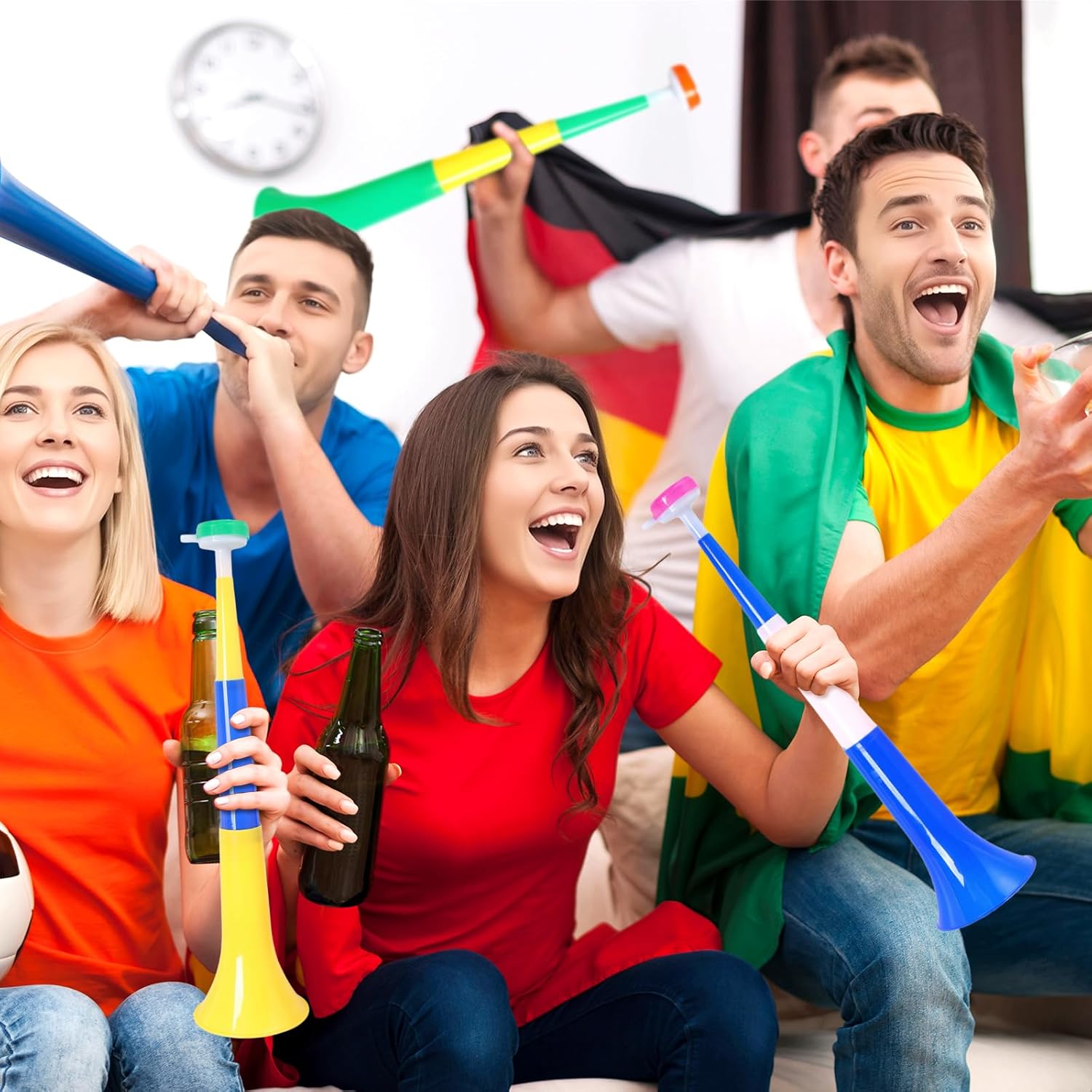 Suono forte e potente: produce un suono denso e forte che passa attraverso gli stadi, rendendolo più efficace rispetto ai fischietti tradizionali per un efficace tifo della folla. Struttura durevole: realizzato con materiali resistenti all'usura progettati per un uso ripetuto in più eventi senza deterioramento delle prestazioni. Applicazione versatile: ideale per eventi sportivi, cerimonie di laurea, feste di compleanno, concerti, festival, matrimoni e spettacoli dal vivo per aumentare il morale e creare atmosfere festive. Design dai colori vivaci: presenta cinque colori vivaci distinti con elementi a tema calcio che migliorano la visibilità e lo spirito di squadra durante eventi e celebrazioni. Set completo da 5 pezzi: include cinque produttori di rumore riutilizzabili, perfetti per feste di gruppo, consentendo a più fan di partecipare alla creazione di un energico supporto per la folla.