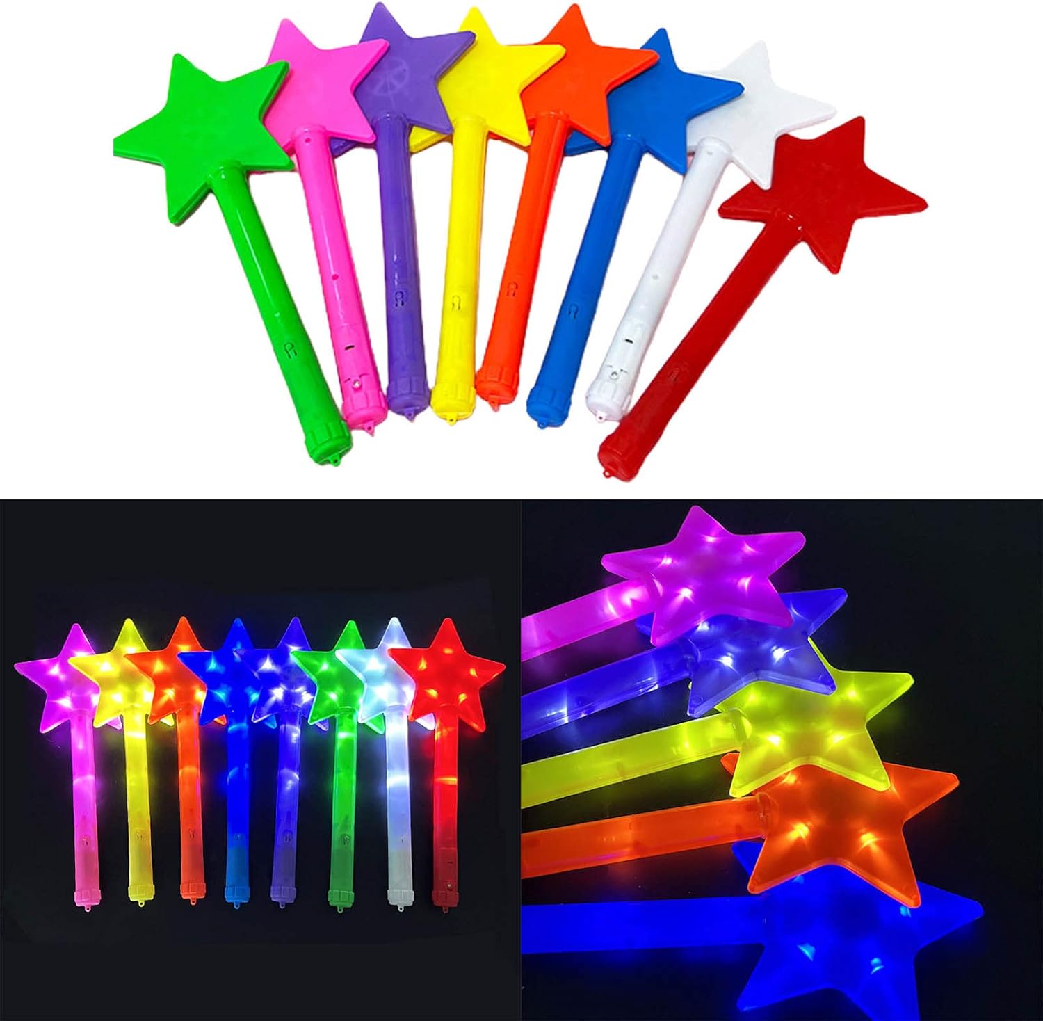 Bacchetta luminosa a stella, bastoncini luminosi, bastoncini luminosi per feste, bacchetta luminosa a stella, bastone luminoso a LED, feste, bastoni luminosi, bastone lampeggiante continuo, e può anche essere utilizzato in modo intermittente per una conservazione a lungo termine attraverso il controllo, e la batteria a bottone può essere sostituita. Fresco e luminoso, non irritante. Facile da usare, 500 m visibile Facile da trasportare. Isolamento della pelle per perdite, basta scollegarlo durante l'uso. Ideale per intrattenimento serale come feste, feste di compleanno, celebrazioni, aperture, banchetti di nozze, concerti, KTV, . La confezione include: 5 pezzi di bastoncini luminosi