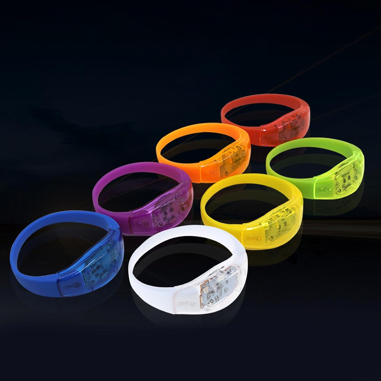 Illumina la tua festa con i braccialetti luminosi. Questi braccialetti fosforescenti sono per aggiungere un tocco di divertimento a ogni occasione Che si tratti di una festa vivace, di un festival o di una celebrazione, questi braccialetti luminosi miglioreranno l'atmosfera Lascia che il ritmo guidi il tuo bagliore. Con tecnologia di attivazione del suono, questi braccialetti lampeggiano insieme alla musica, creando un'atmosfera emozionante Adatto per gli appassionati di feste, frequentatori di festival e coloro che amano le decorazioni uniche. Questi braccialetti luminosi sono un ottimo accessorio per varie riunioni Realizzati con materiali pregiati, questi braccialetti luminosi a LED sono comodi e confortevoli. Sono progettati per essere attraenti e accattivanti