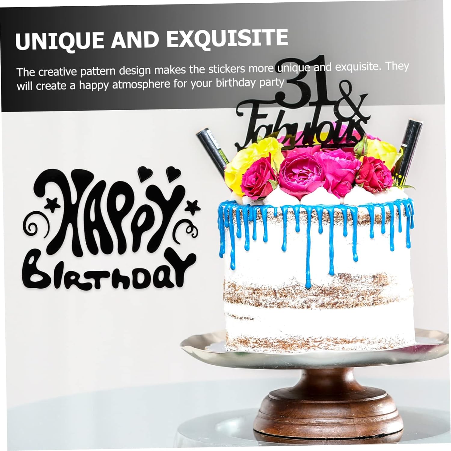 Adesivi per feste: possono essere utilizzati anche per decorare finestre, pareti e altre superfici lisce, adesivi di buon compleanno Adesivi di compleanno per planner: con motivi ricchi, questi adesivi da parete sono adorabili e squisiti, adesivi per auto di buon compleanno Adesivo decorativo: può essere incollato sul palloncino per decorare durante le feste di compleanno, cartello adesivo di buon compleanno Adesivi per feste di compleanno: possono essere attaccati a un palloncino per decorazione o ad altre superfici per aggiungere atmosfera, adesivi per calendario di compleanno Adesivi murali decorativi: possono essere attaccati a pareti, finestre, palloncini e qualsiasi superficie liscia, adesivi per feste di compleanno