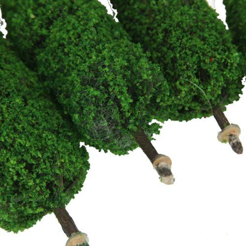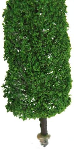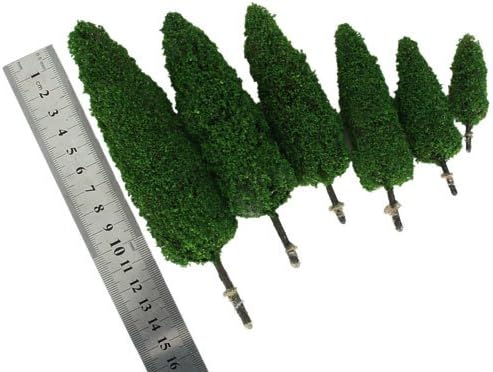 Confezione da 6 alberi modello cipresso con altezze variabili Perfetto per valorizzare paesaggi modello con vegetazione Tronco marrone e foglie verdi per un aspetto realistico Realizzato in cemento plastico resistente Include alberi di dimensioni che vanno da 5,8 cm a 15 cm